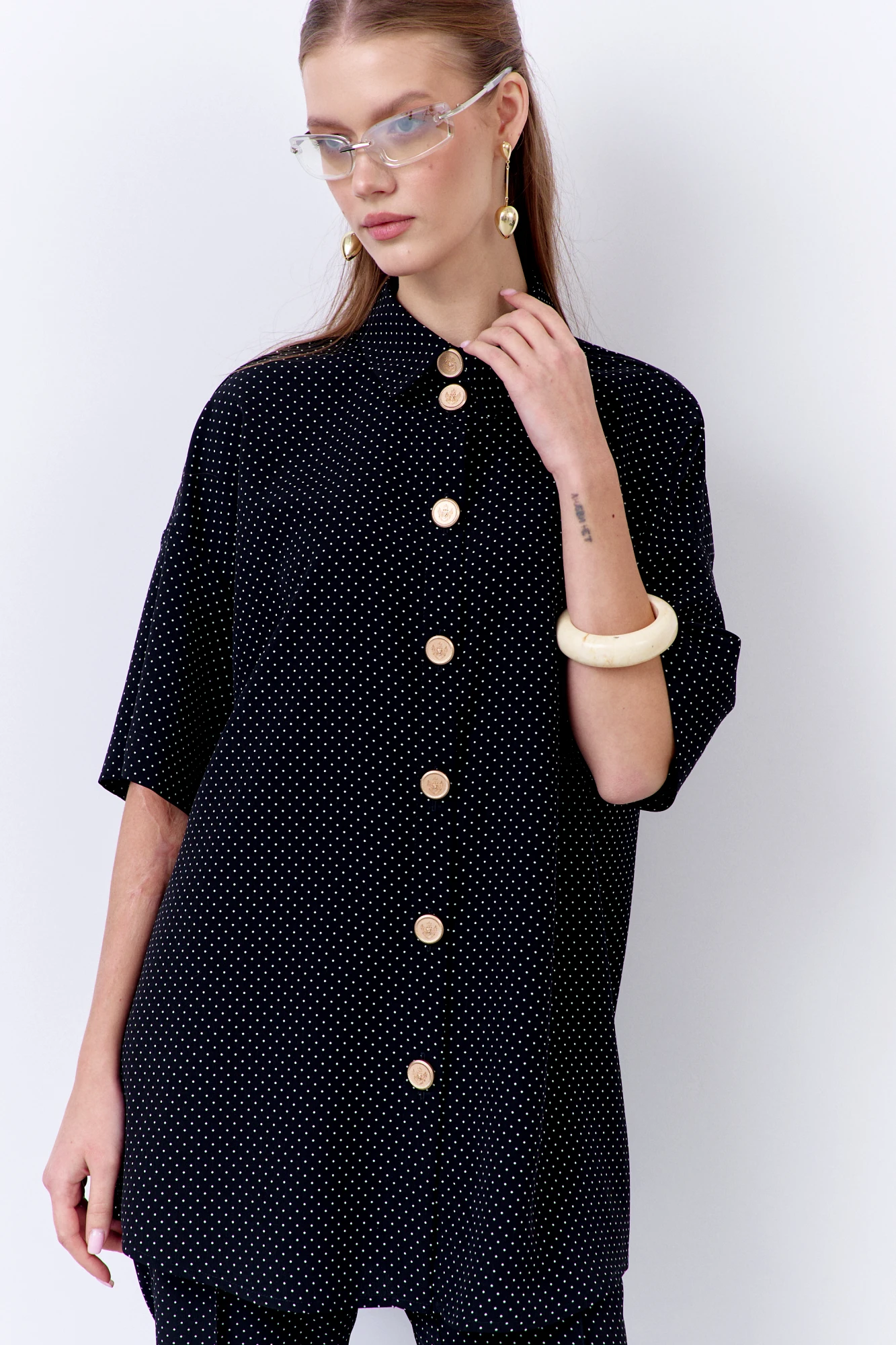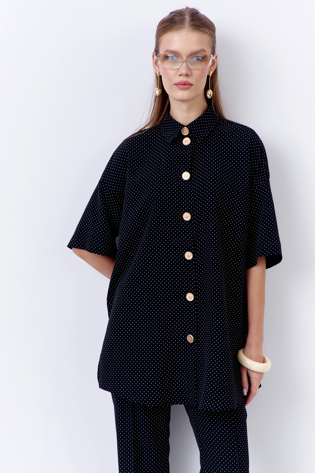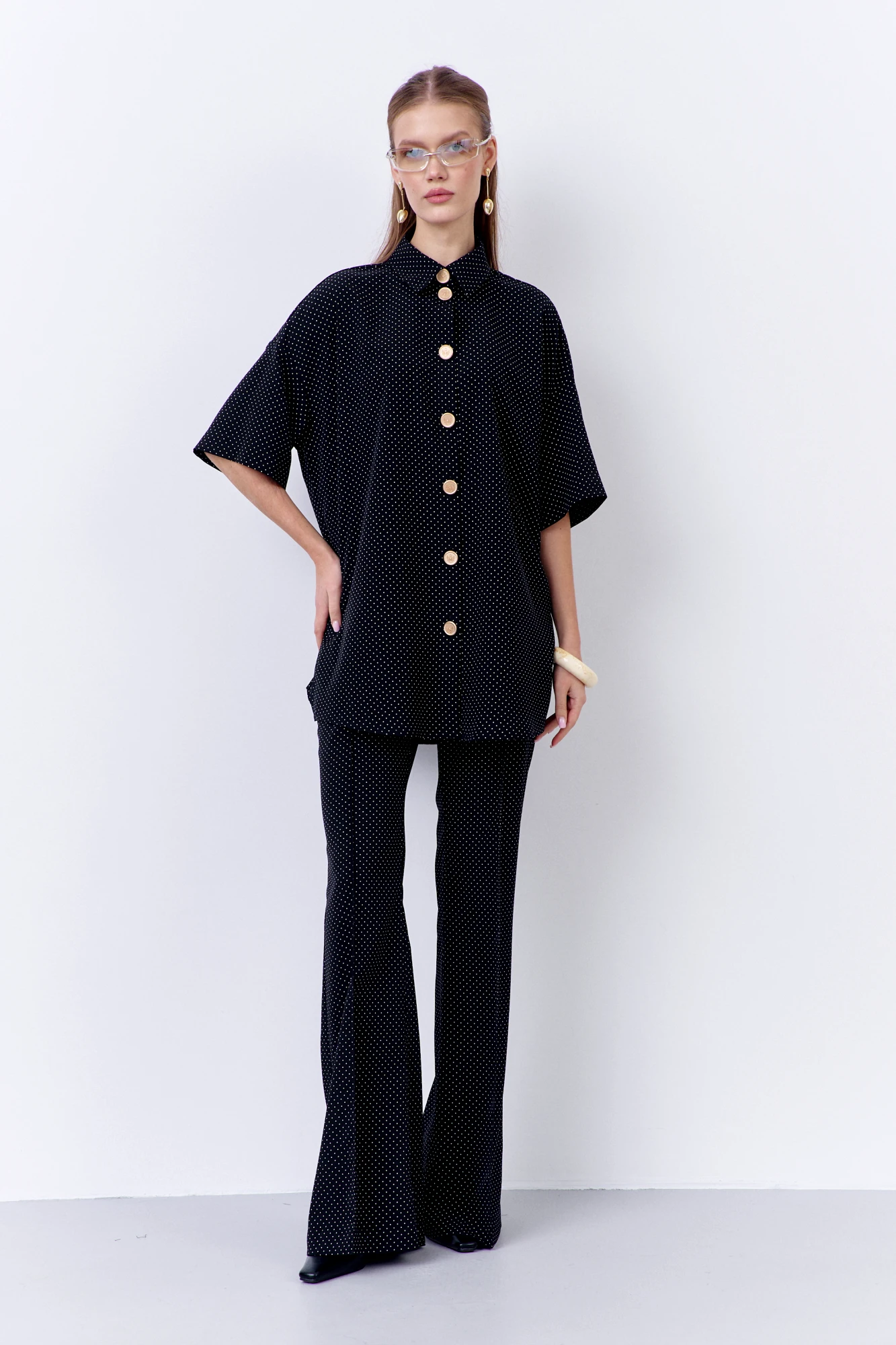 Брючный костюм FLAIM 2068 двойка черный, горох