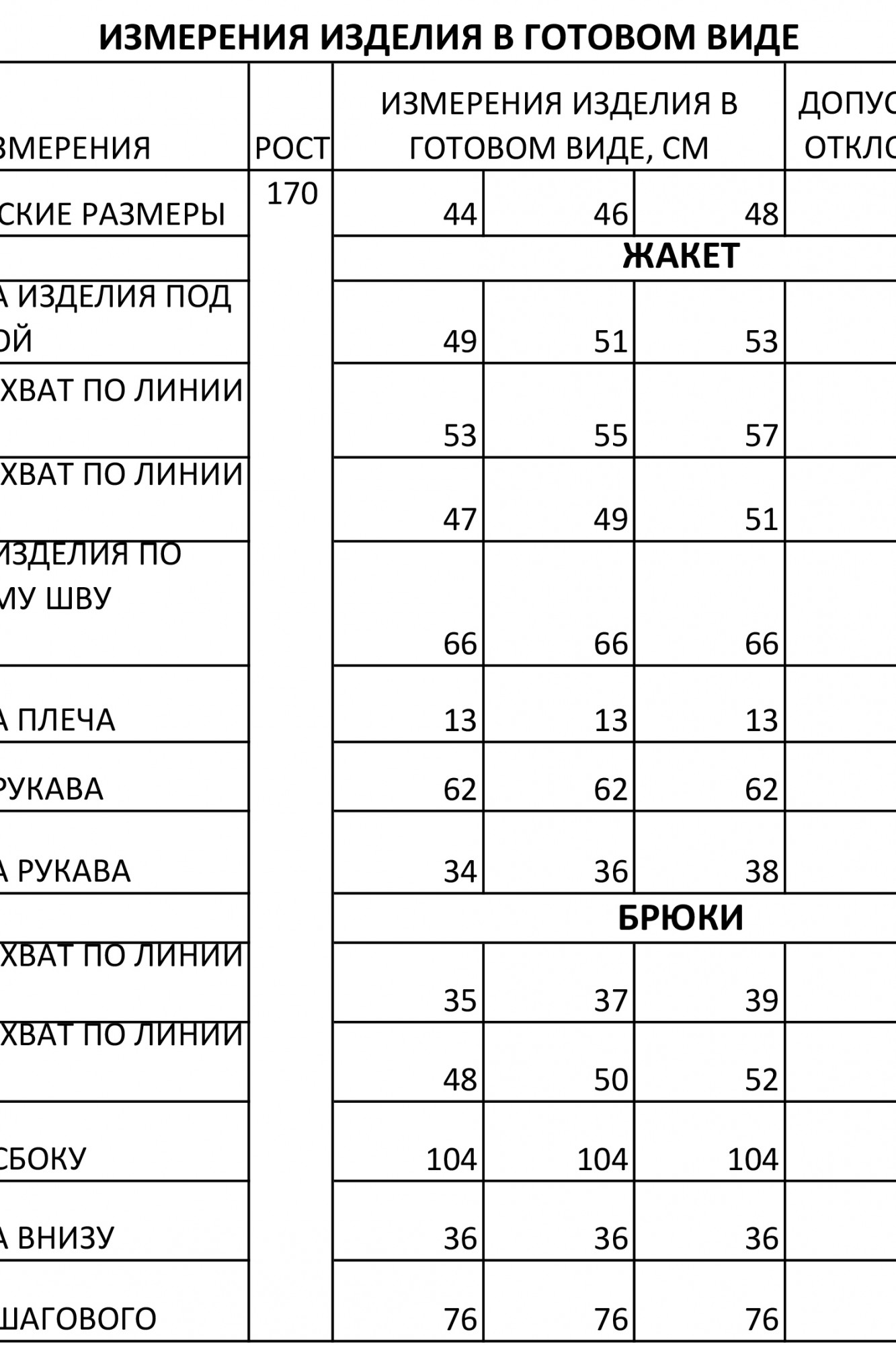 Жакет, брюки: вискоза 70%, п/э 25%, спандекс 5%; Подкладка: п/э 100%