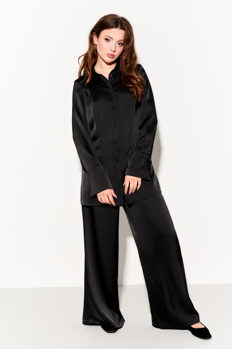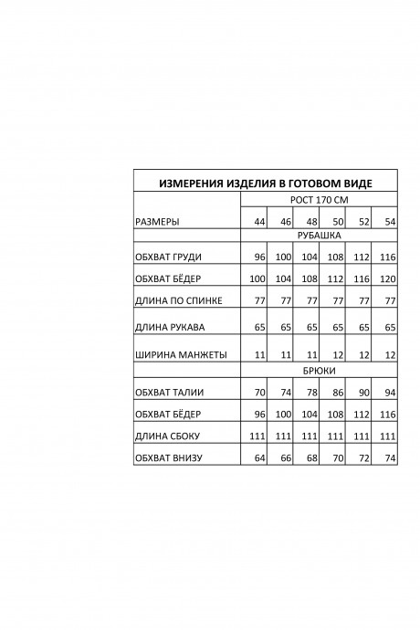 Женский костюм, состоящий из рубашки и брюк, выполнен из струящейся ткани с содержанием шёлка. Базовая женская рубашка полуприлегающего силуэта выполнена из струящейся ткани с содержанием шёлка. Рукава втачные с мягкими складками по низу рукава и высокой манжетой с одной функциональной пуговицей; по переду рельефы; воротник рубашечный; в боковых швах декоративные разрезы; застёжка по переду на петли и пуговицы. Классические брюки прямого силуэта с мягкими складками по переду и функциональными карманами в боковых швах; пояс притачной с эластичной тесьмой по спинке для лучшего прилегания; застежка на молнию, петлю и пуговицу. Костюм полностью соответствует заявленному размеру. Пожалуйста, пользуйтесь таблицей замеров готового изделия. Уход: - при стирке в стиральной машине выбрать бережный либо деликатный режим; - температура воды не выше 40 градусов. Пожалуйста, пользуйтесь таблицей замеров готового изделия.