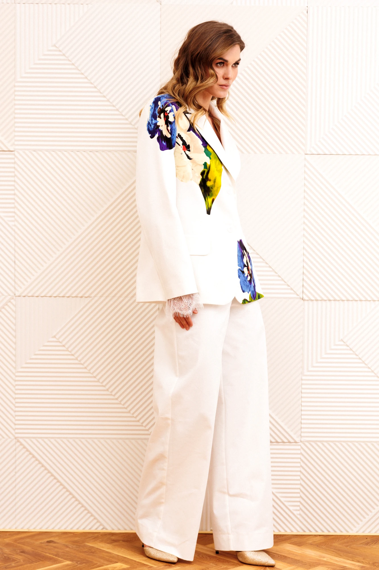 Брючный костюм GIZART 5377 молочный, цветок