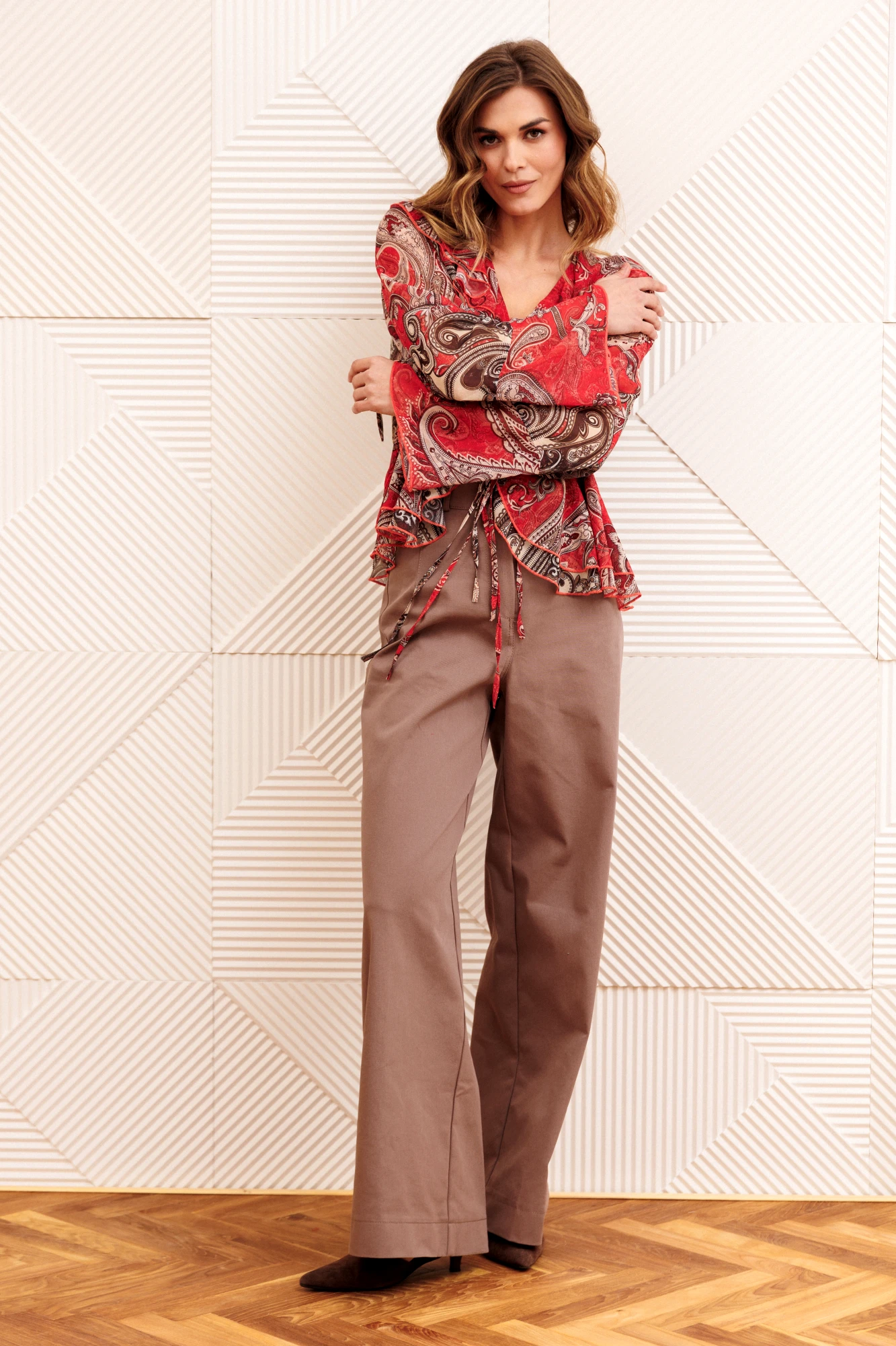 Брючный костюм GIZART 5403 красный, капучино