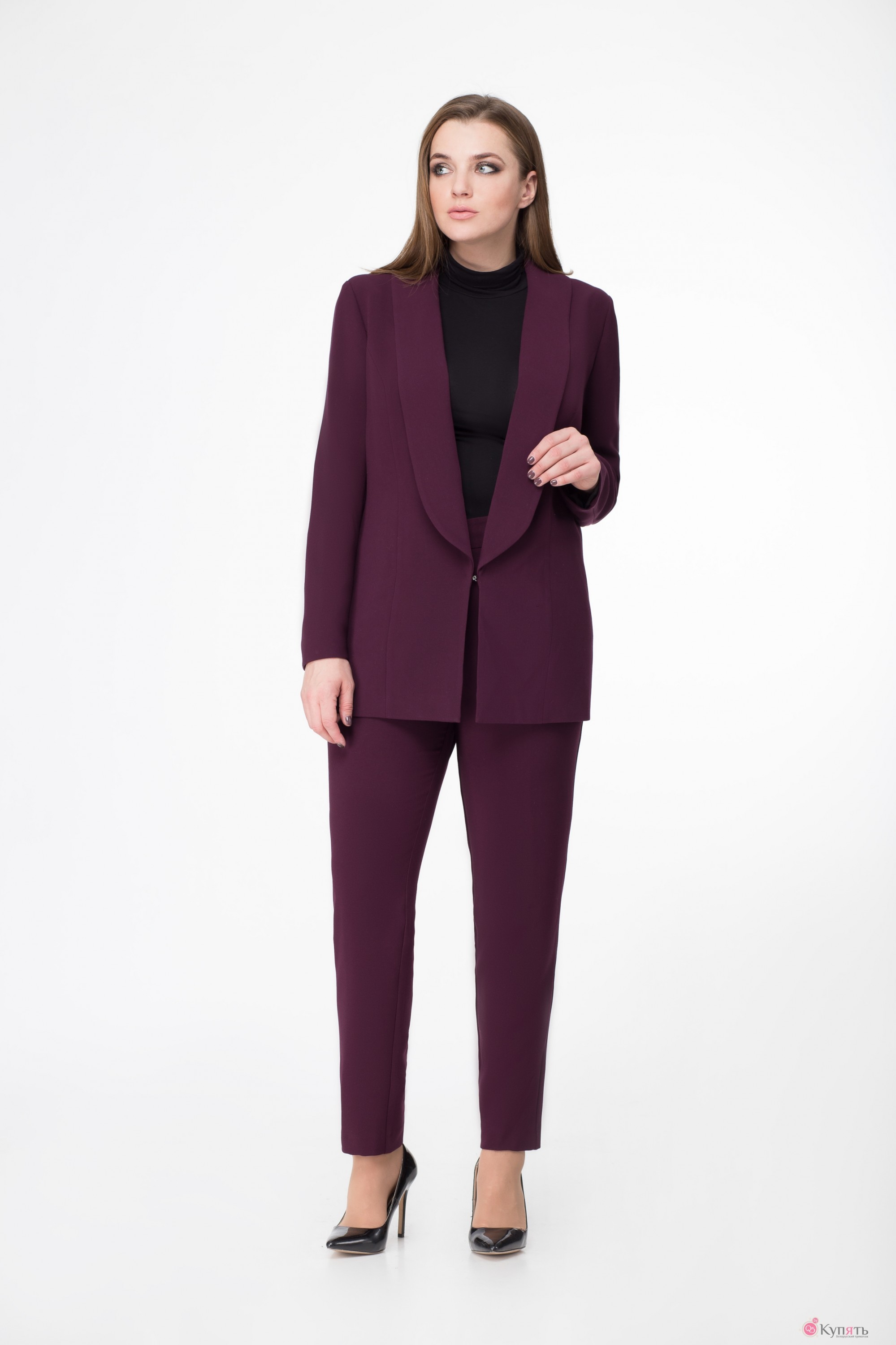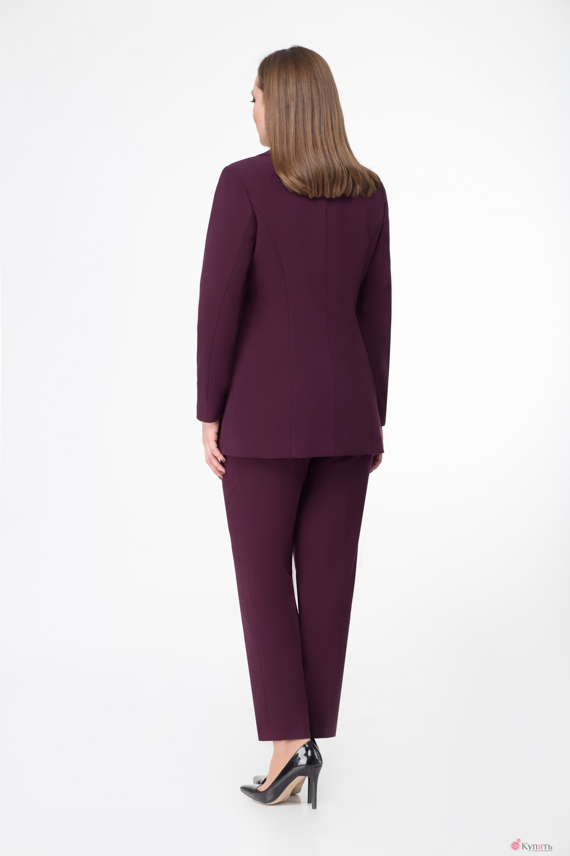 Стильный, элегантный женский костюм, состоящий из брюк и удлиненного жакета. Жакет полуприлегающего силуэта с отложным воротником, который подчеркивает глубокий вырез горловины. Предусмотрена застежка на декоративный крючок. Брюки с карманами, зауженные к низу. Отличный вариант для офиса, повседневной носки и торжественных случаев. Ширина рукава жакета внизу: 50р – 11,6 см; 52р – 11,9 см; 54р – 12,3 см; 56р – 12,6 см; Обхват брюк на уровне талии: 50р -42,4см; 52р -44,5см; 54р -47,0см; 56р -49,3см; Ширина брюк внизу: 50р -16,4см; 52р -17,1см; 54р -17,7см; 56р -18,4см;