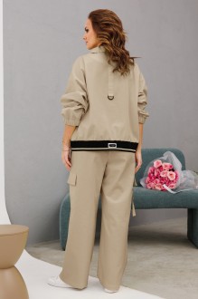 Жакет свободного силуэта, воротник рубашечного типа, рукав спущенный длинный на резинке по низу. По переду кокетка и накладные карманы с клапаном. Застежка по переду на петли и пуговицы.