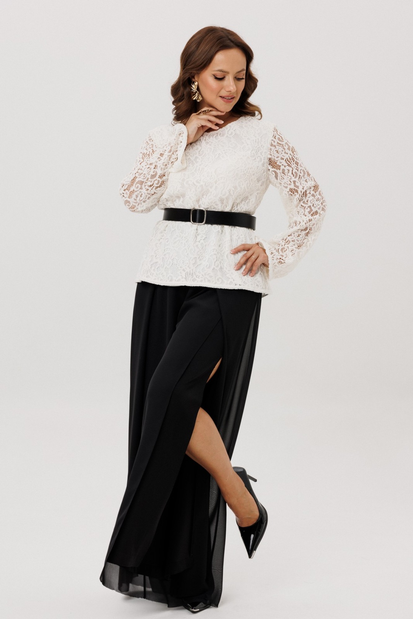 Блузка полуприлегающего силуэта, вырез горловины округлый, рукав втачной-клеш. Изделие на подкладке, без застежки.