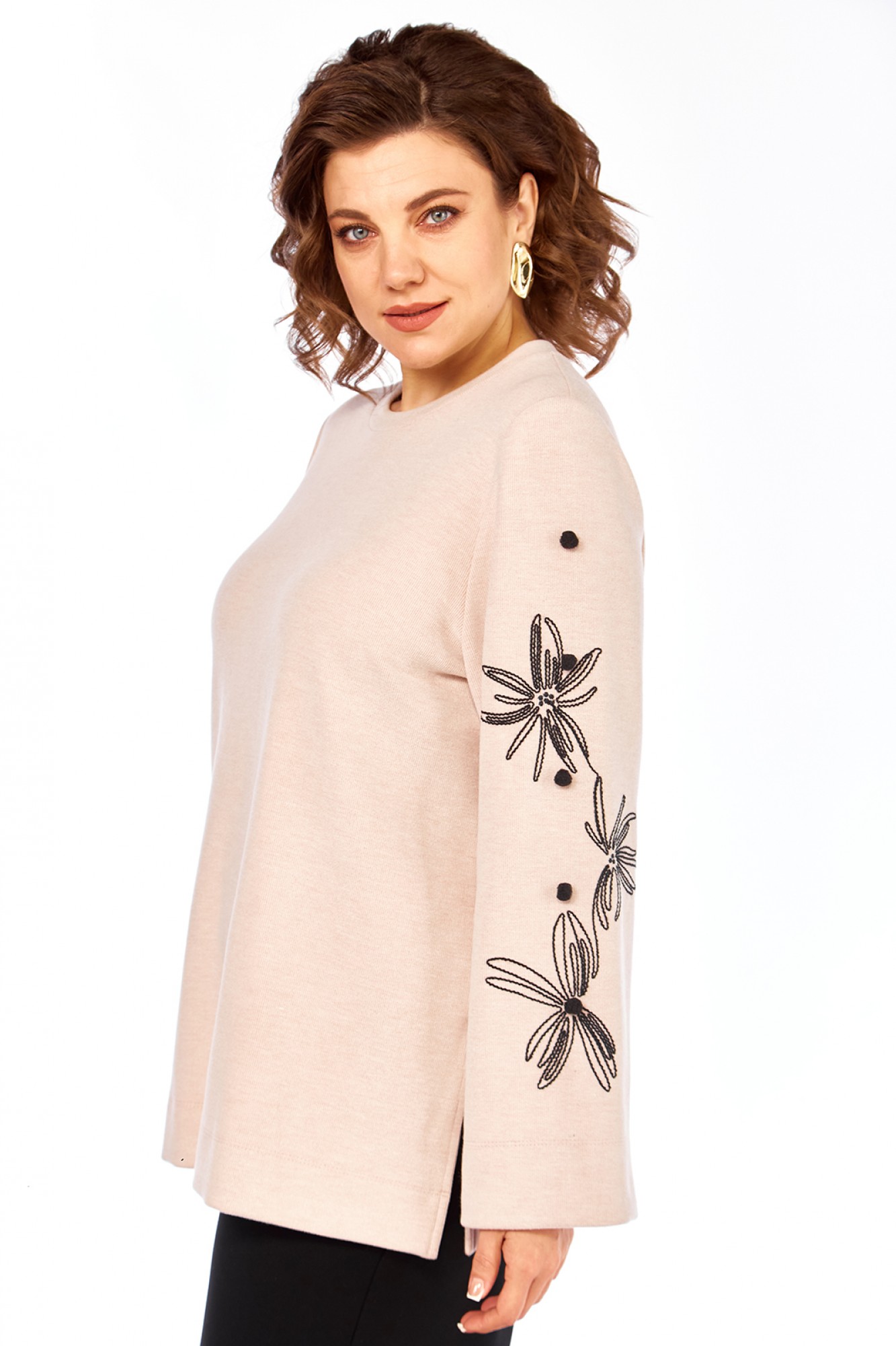 Комплект брючный двухпредметный, состоит из джемпера и брюк. Джемпер выполнен из трикотажного полотна. Перед цельнокроеный. Рукава втачные декорированы вышивками и помпонами. В боковых швах обработаны разрезы. Брюки прямые из трикотажного полотна. Пояс на резинке. В брюках обработаны карманы. Обращаем Ваше внимание, что цвет на экране может отличаться от реального.