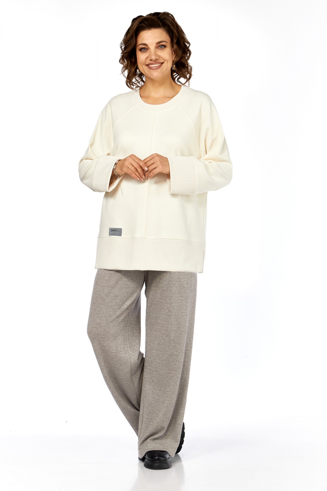 брюки: вискоза — 65%, полиэстер — 20%, акрил — 15%. Джемпер: вискоза — 65%, полиэстер — 20%, акрил — 15%.