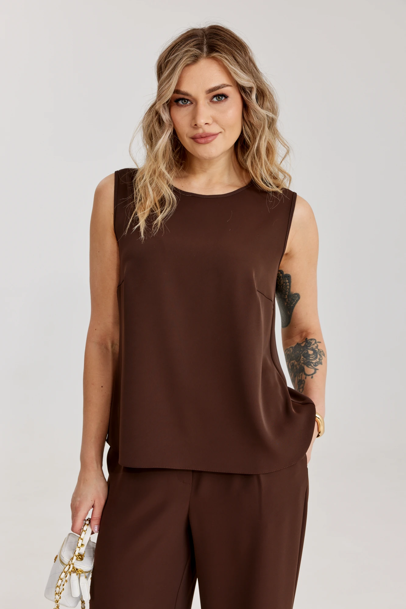 Брючный костюм KALORIS 2298 тройка бело-коричневый