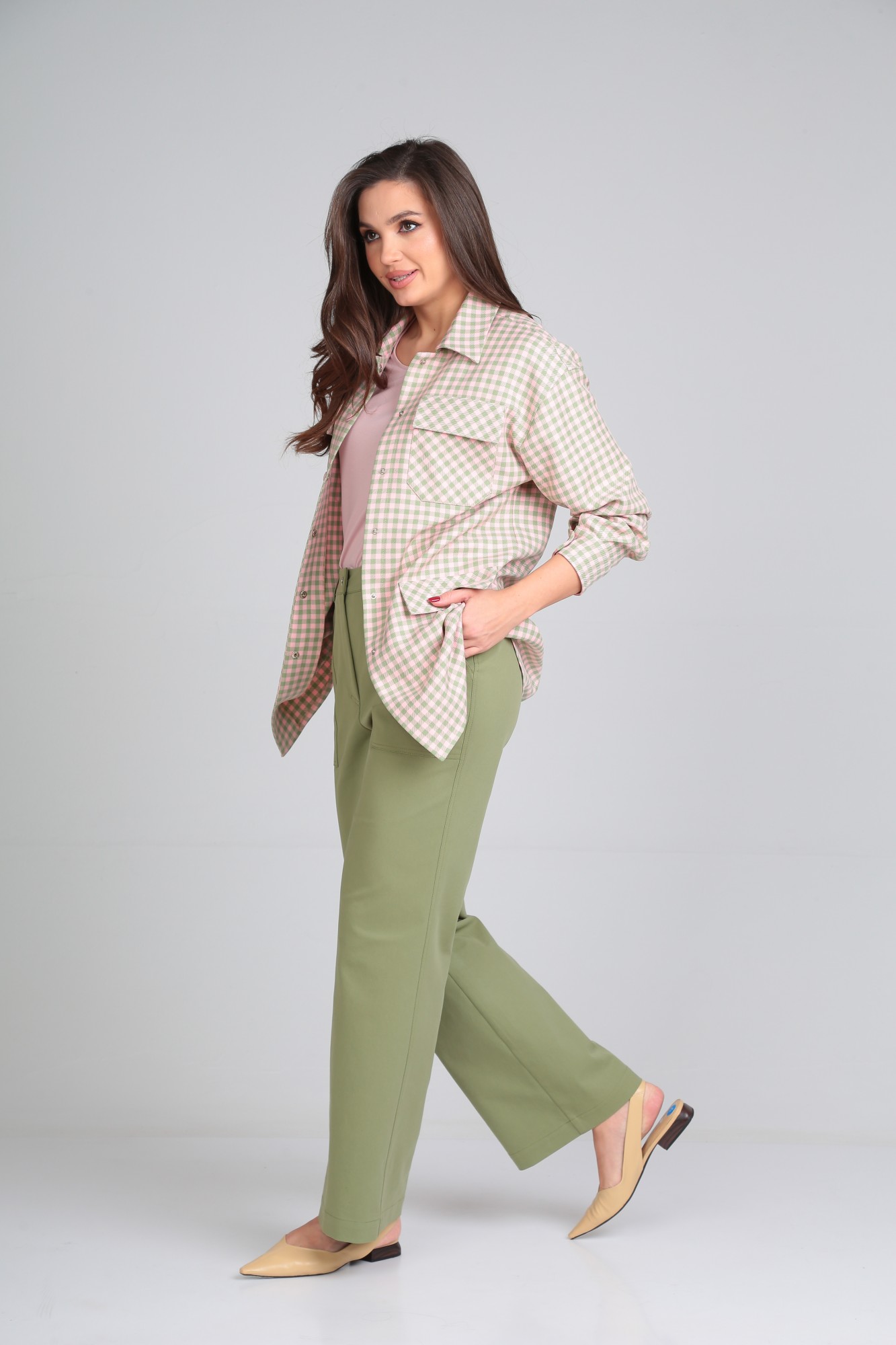 Брючный костюм КаринаДелюкс М-1002-2 розовый/оливковый с ID товара 357354