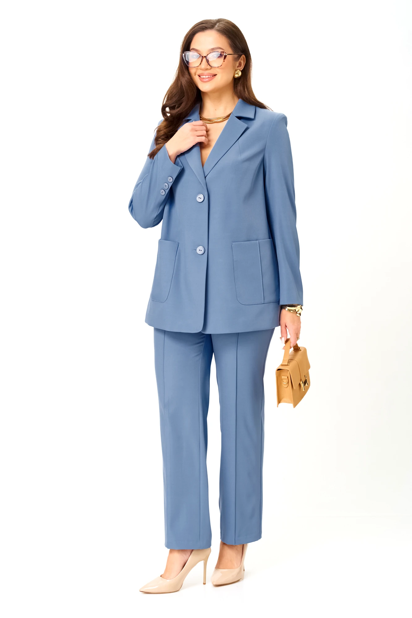 Брючный костюм КаринаДелюкс М-1273 двойка голубой