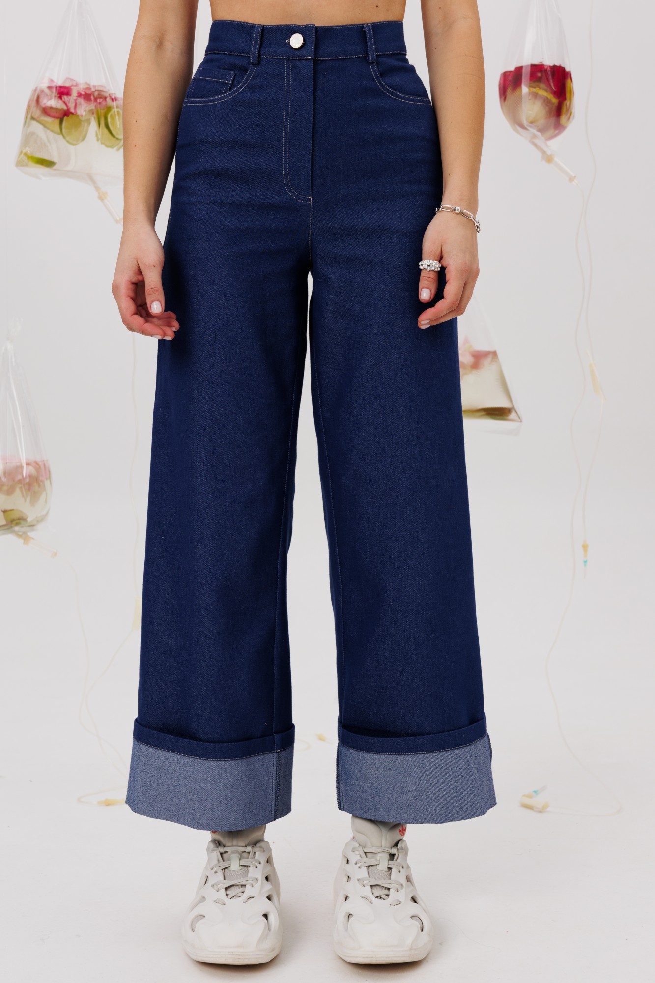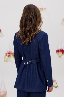 Комплект состоит из жакета и джинс прямого кроя. Приталенный жакет с накладными карманами. Жакет на подкладке. По переду в верхнем кармане декор из алых перчаток, которые можно носить для создания аристократичного образа. По спинке регулируемый пояс, для более заталенного и женственного силуэта. Джинсы с высокой посадкой и отворотом по низу. Сзади на кармане выполнен декор в виде "золотого сердца". Крой расширенный к низу.