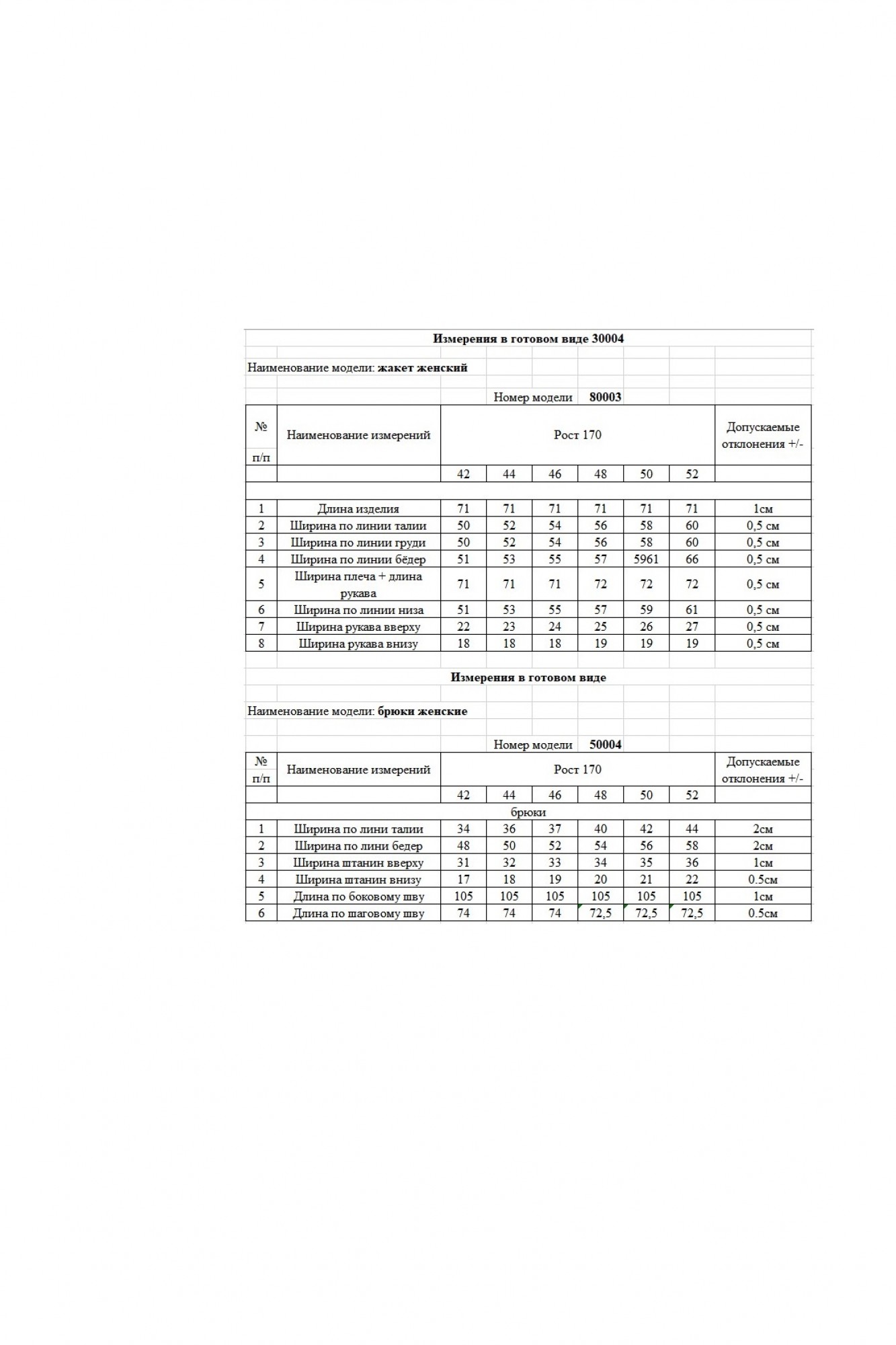 Таблица размеров