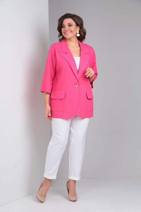 Брючный костюм Ладис Лайн 1464 фуксия+белый с ID товара 358663