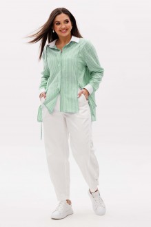 Блузка женская из нежнейшей ткани ""вуаль"", полуприлегающего силуэта, со спущено линией плеча, с втачными рукавами, с втачным воротником, с центральной сквозной застежкой на 6 петель и 6 пуговиц и 1 петлю и пуговицу на стойке воротника. Детали переда блузки с кокетками, на нижних частях расположены накладные карманы, в шов соединения с кокетками вставлены клапаны. Деталь спинки с кокеткой, на нижней части по центру шва соединения обработана складка. Рукава втачные одношовные, с притачными манжетами, с застежкой на 1 петлю и 1 пуговицу. Разрезы рукавов обработаны окантовкой. Брюки на бедрах из облегченной костюмной ткани, плотно облегающие вверху и зауженные к низу, с притачным поясом-кокеткой, со съемным поясом. Застежка на тесьму-молнию, 1 потайной крючок и 1 потайную петлю и пуговицу. На передних половинках в боковых швах обработаны наклонные карманы с планками. На задних частях брюк обработаны по 2 вытачки на каждой половинке. На передних половинках брюк застрочены «канты», на задних - заутюжены. На поясе-кокетке прикреплены 4 шлёвки фигурной формы.