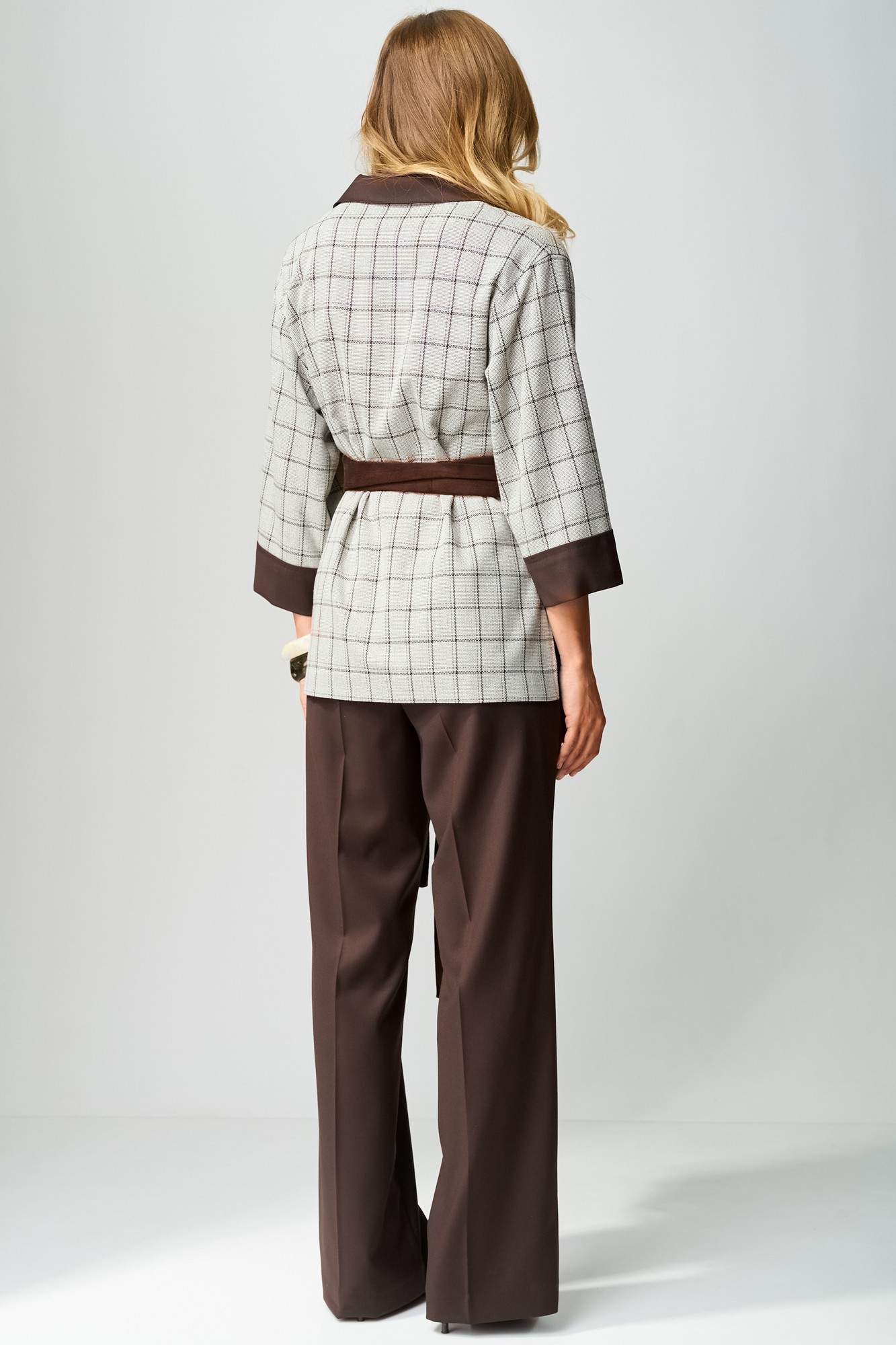 Длина брюк по боковому шву 105 см. Длина жакета по спинке 68-70 см в зависимости от размера, длина рукава 42,5 см.