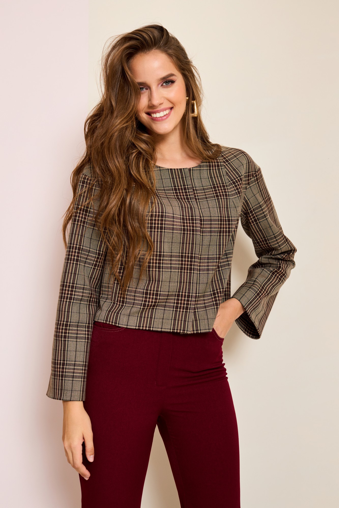 Веяние моды: короткий жакет без воротника, потайная застежка на кнопки (пришивные), внутренние карманы с листочками.