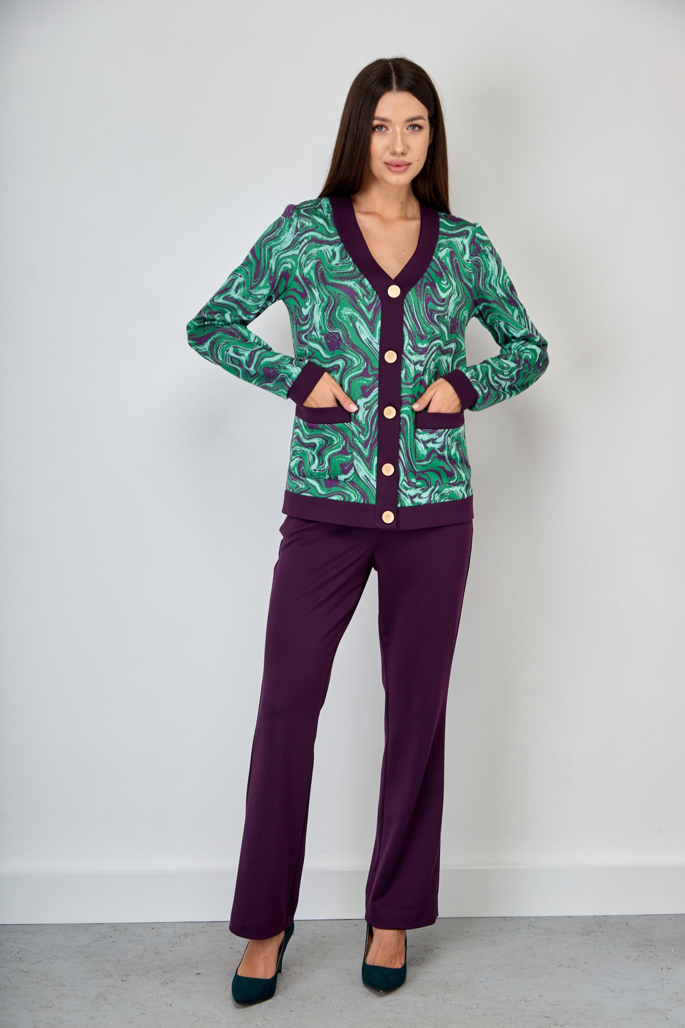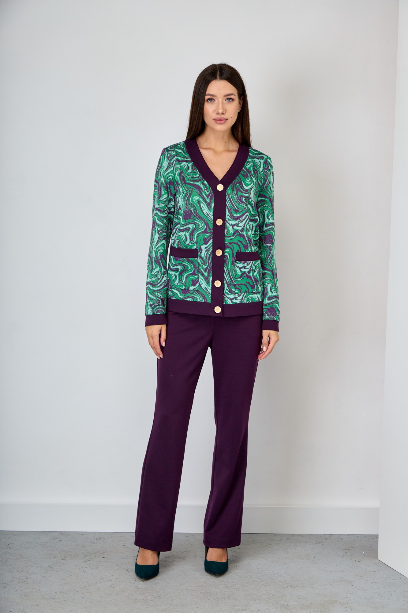 Брючный костюм Ларс Стиль 737 зеленый и бордо-божоле с ID товара 353606