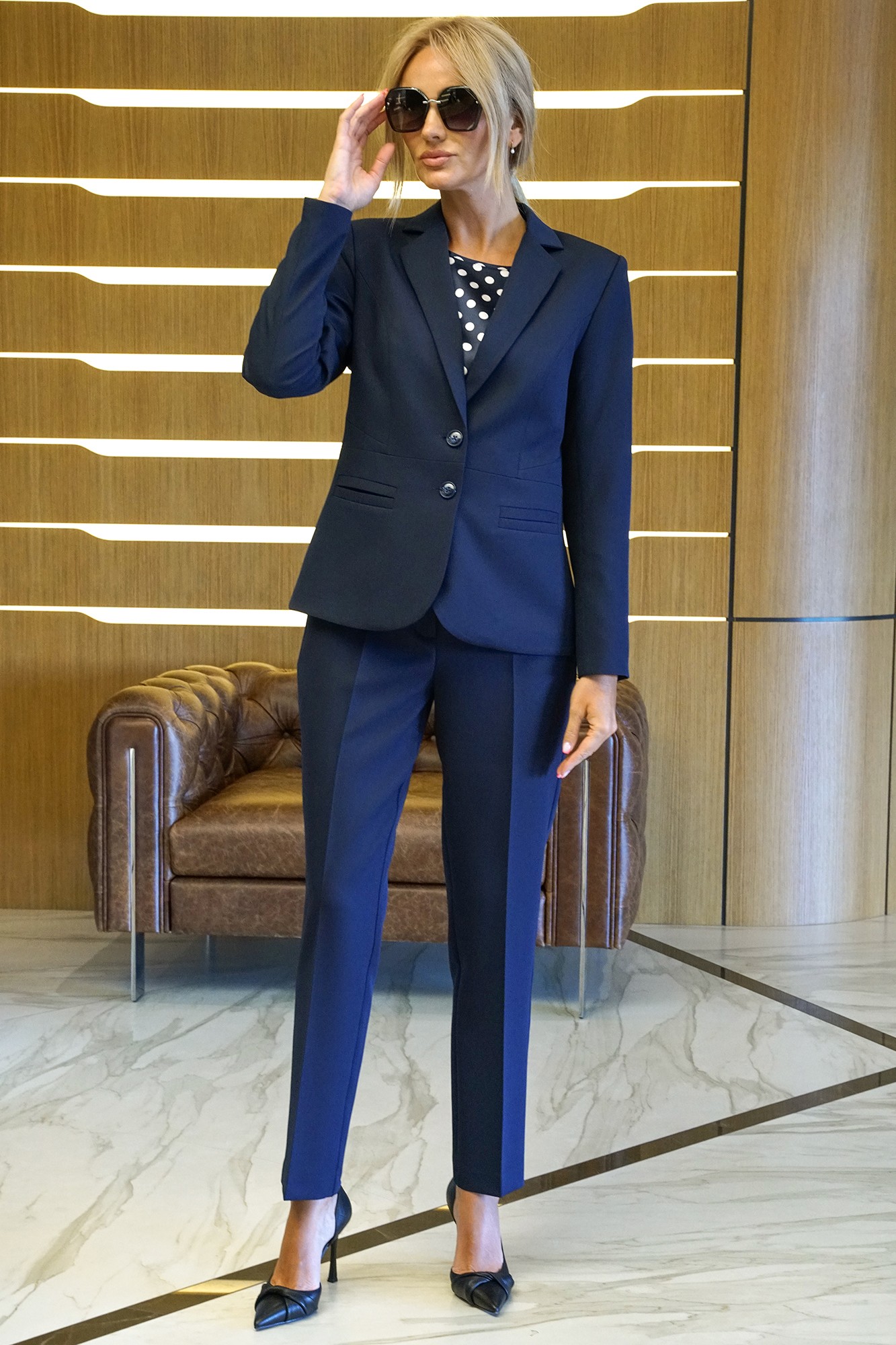 Комплект женский 3-х предметный состоит из жакета, блузы и брюк.