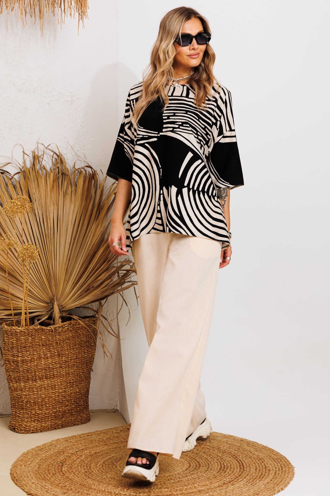 Комплект женский 2-х предметный (блузка, брюки) из текстильной ткани двух видов станет отличным дополнением к вашему гардеробу. Подойдет как для повседневной носки (работа, офис, прогулки), так и для праздничных выходов. Достаточно дополнить его соответствующими аксессуарами. Предметы комплекта легко будут сочетаться с вещами из Вашего гардероба. Блузка со спущенным плечом, трапециевидного силуэта с разрезами по бокам. Брюки прямые однотонные, пояс на резинке, по бокам карманы.