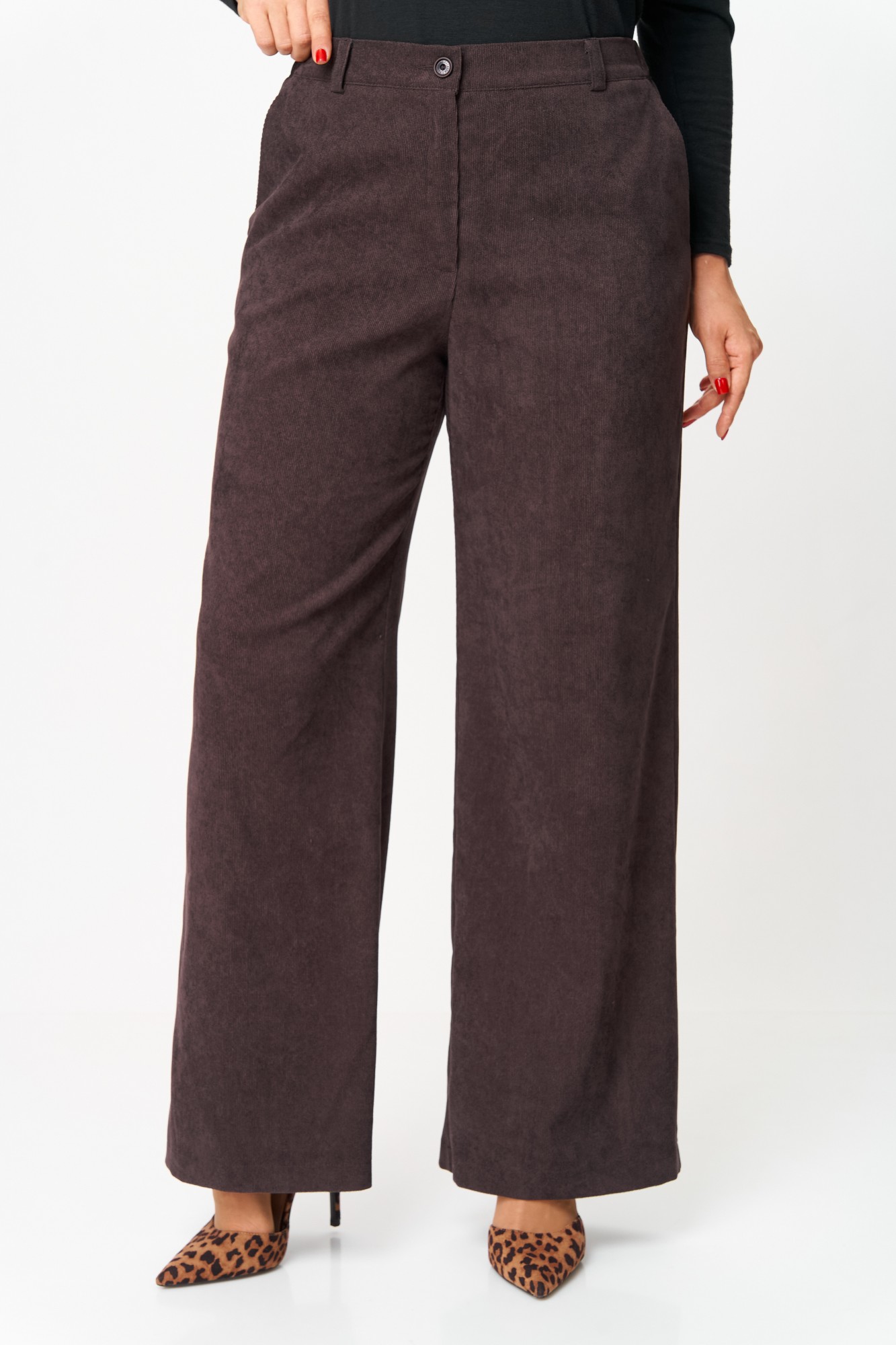 Модный и стильный костюм из вельвета на осень, как на Pinterest, выполнен в модных цветах. В этом костюме-двойке вы будете выглядеть модно в любой ситуации. Вельвет в мелкий рубчик, пластичный и комфортный, имеет отличный состав. Костюм состоит из жилета и брюк. Жилет на подкладке. Жилет полуприлегающего силуэта, полочка жилета с вертикальными рельефами и прорезными функциональными карманами с листочкой. Горловина V-образной формы. Спинка со средним швом и вертикальными рельефами. Брюки прилегающие по бедрам и свободные в области колена и по низу. На передних половинках выполнены наклонные карманы. По задним половинкам таллиевые вытачки. В среднем шве передней половинки обработана застежка на молнию. Брюки на притачном поясе с эластичной тесьмой и застежкой на петлю и пуговицу. По поясу брюк настрочены шлевки для ремня.