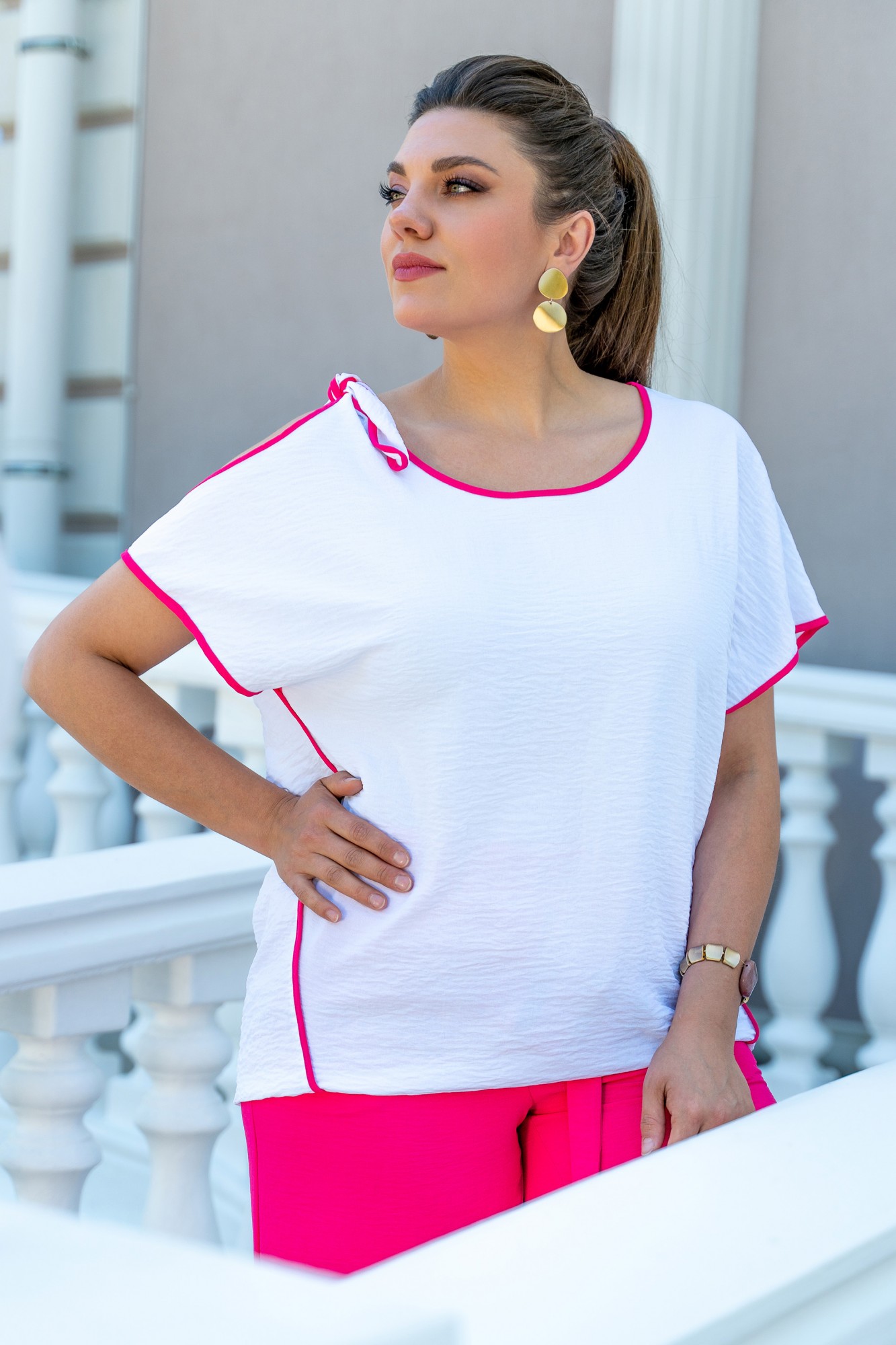 Брючный костюм ANDINA 915 двойка фуксия, белый с ID товара 370579