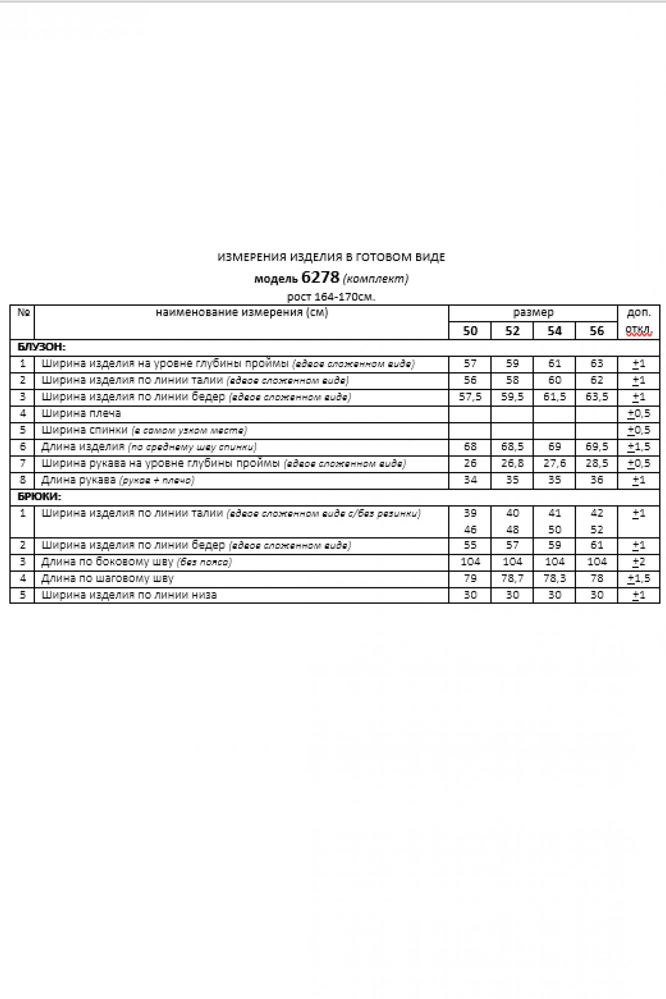 Длина брюк с поясом (по боковому шву) – 108 (+2) см.