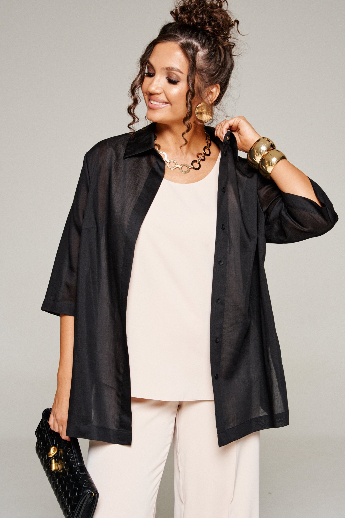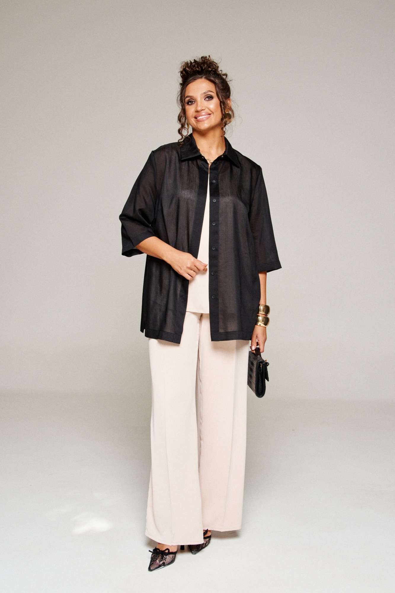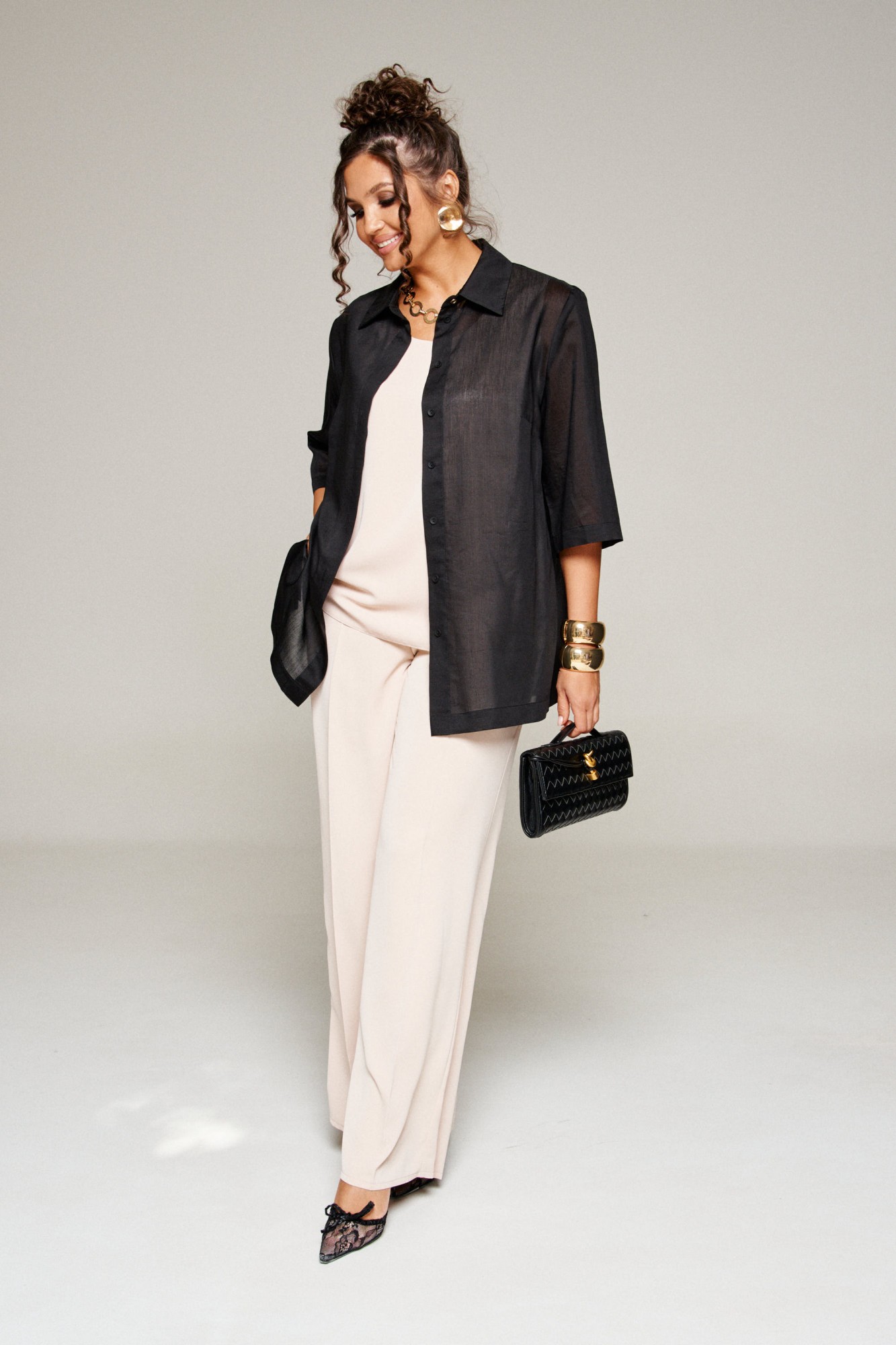 Комплект с блузкой из вуали, брюк и топа – изделие вне времени и трендов, созданное в различных интерпретациях: от оверсайза до классики. Предназначен для повседневного и выходного использования. Найдет применение в любую погоду.