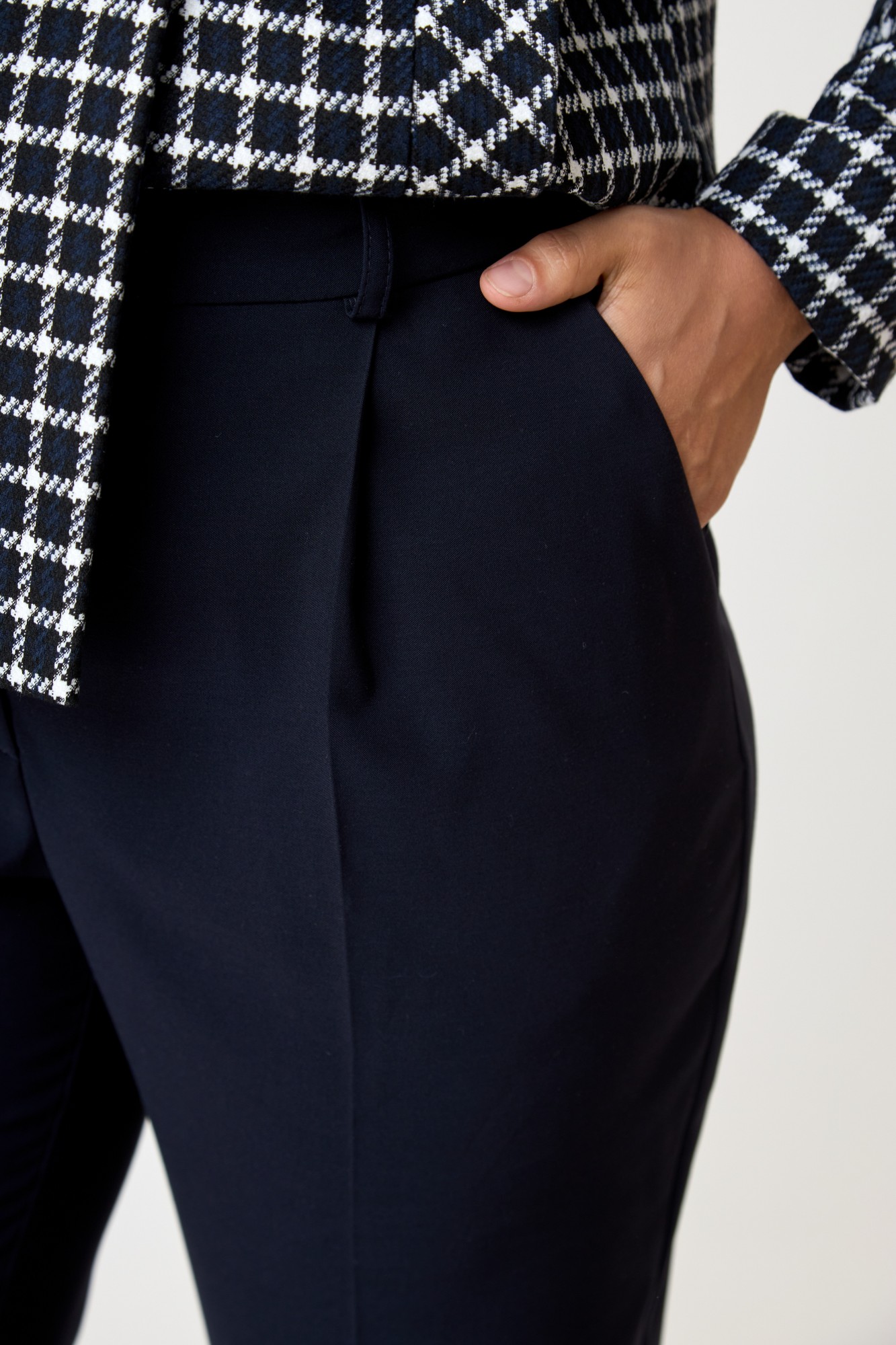 Состав жакета: Вискоза 86%, ПЭ 14% Состав брюк: ПЭ 70%, вискоза 26%, эласна 4%
