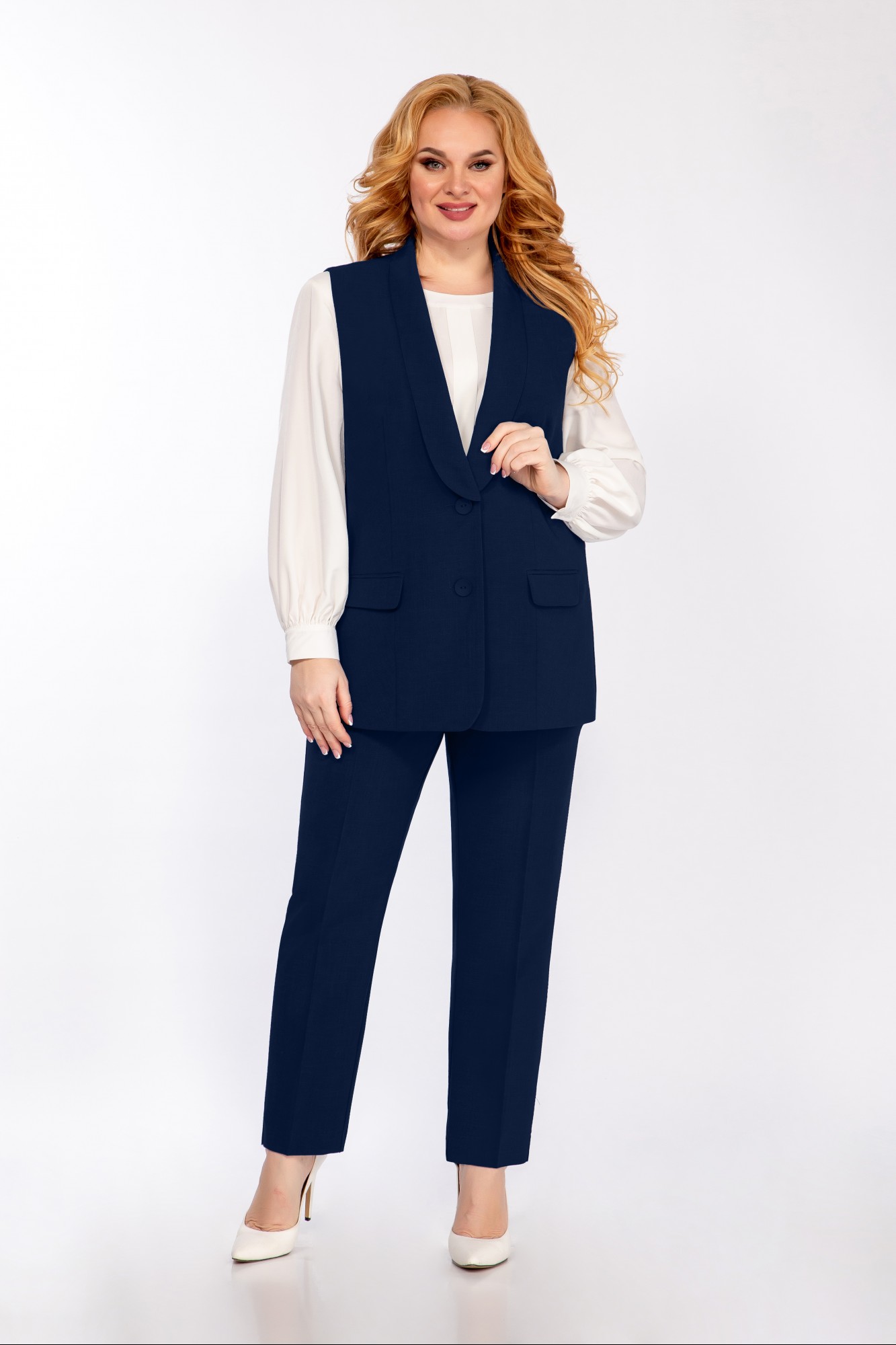 Брючный костюм Элль-Стиль 2132 тройка -5 темно-синий с ID товара 413305