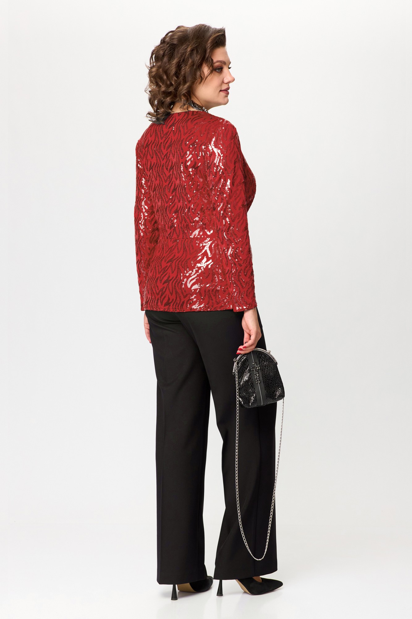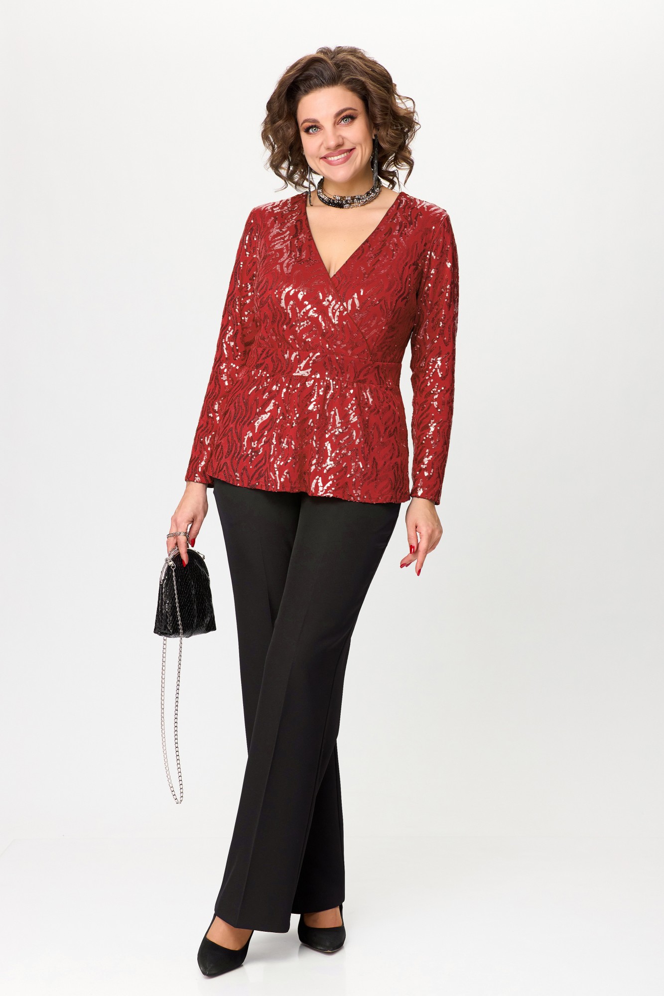 Красивый нарядный комплект двойка на подкладке. Блузон из легкой трикотажной ткани расшитой пайетками с имитацией запаха, втачным поясом и баской по переду со сборкой, рукав втачной, длинный. Все детали блузона обработаны трикотажной подкладкой, что исключает дискомфорт покалывания пайеток. Брюки из костюмной ткани прямого силуэта на притачном поясе с эластичными лентами по бокам пояса. Средней посадки. С боковыми карманами Застежка молния спереди.