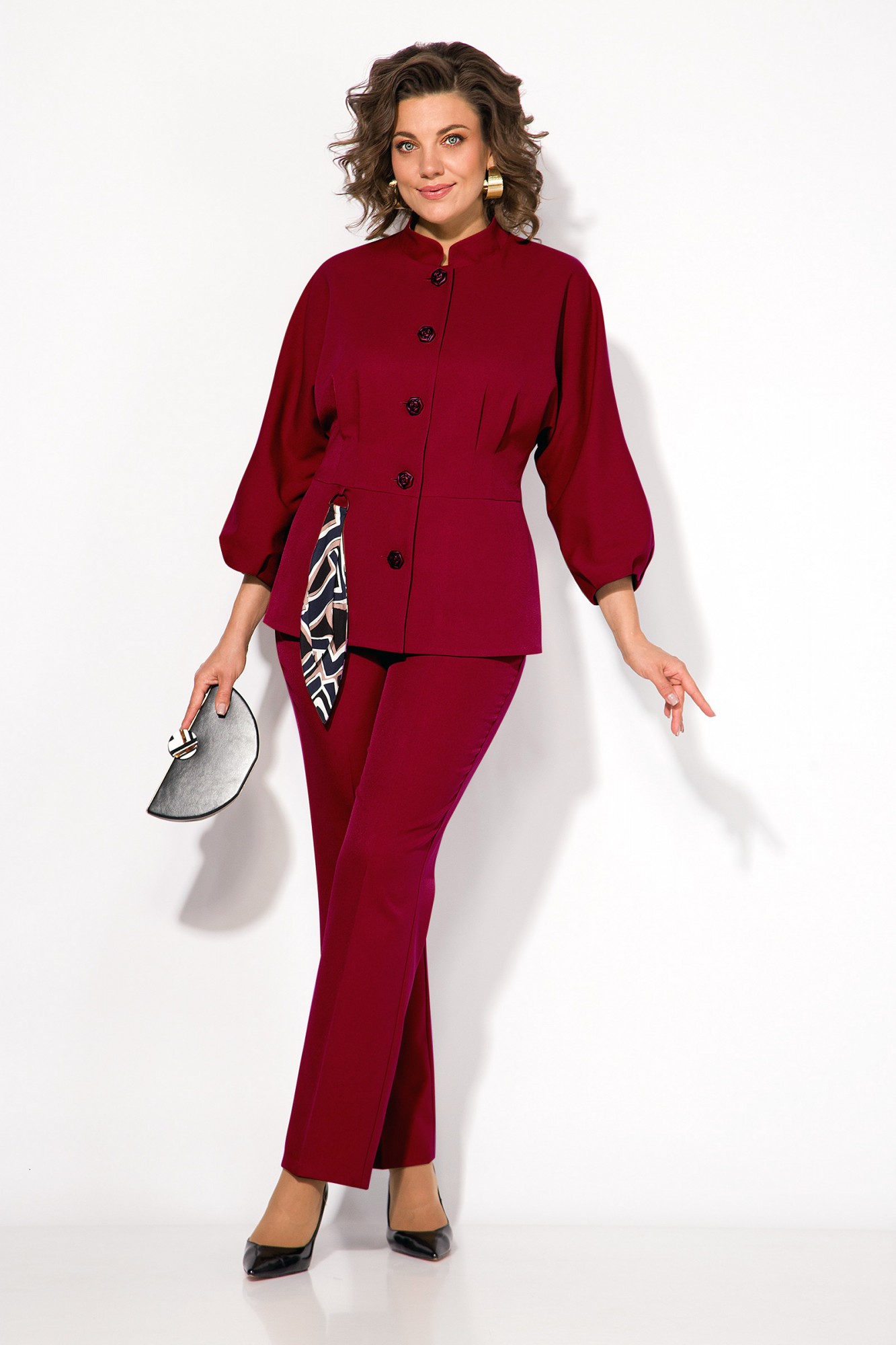 Брючный женский костюм– это воплощение элегантного стиля и комфорта. Комплект состоит из стильного жакета и прямых брюк, и является классическим выбором для любого торжественного или праздничного мероприятия! Жакет полуприталенного силуэта, с цельнокроеным рукавом длиной ¾-тии. Воротник фигурная стойка, переходящая в центральную бортовую застежку на декоративные пуговицы. По талии жакет отрезной, с заложенными выточками. Низ рукава с декоративными защипами создает эффект фонарика. Жакет на шелковой подкладке. Брюки в комплекте классического покроя, с заутюженными стрелками. Пояс притачной, со вставками резинки по бокам. Застежка – брючная тесьма-молния с боковыми карманами и обработанным гульфиком. Данный стильный костюм украшает съемный аксессуар в виде подвески с декоративным шарфиком! Данный костюм станет незаменимым элементом повседневного гардероба и подчеркнет Вашу индивидуальность в любой ситуации. Не позволяйте себе упустить шанс выглядеть неотразимо и оригинально!