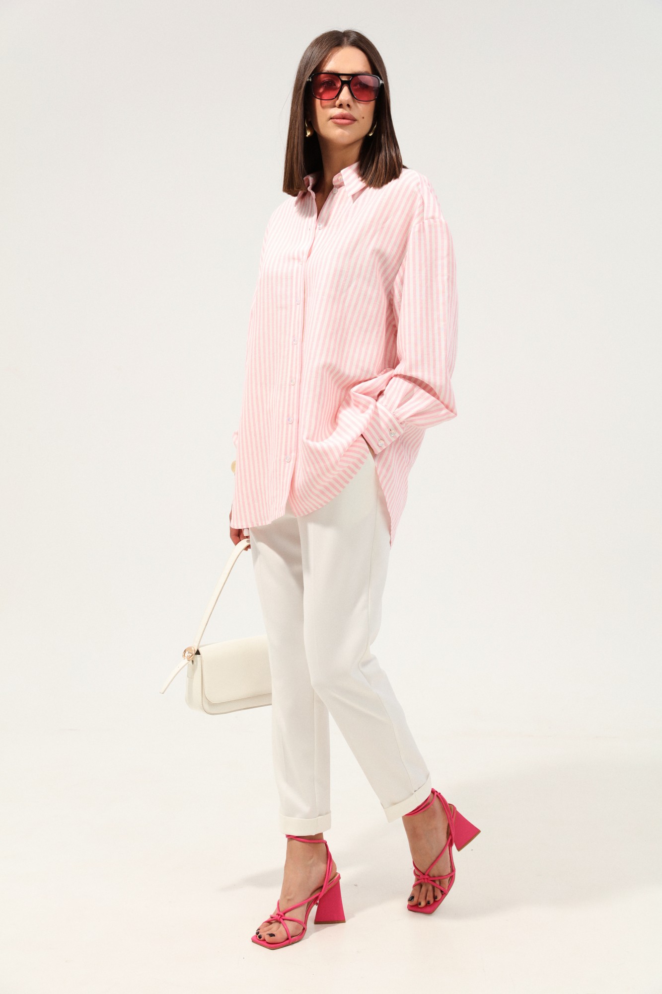 рубашка - лён 53%, вискоза 47%, брюки - 64% полиэстер, 33%вискоза, 3% эластан