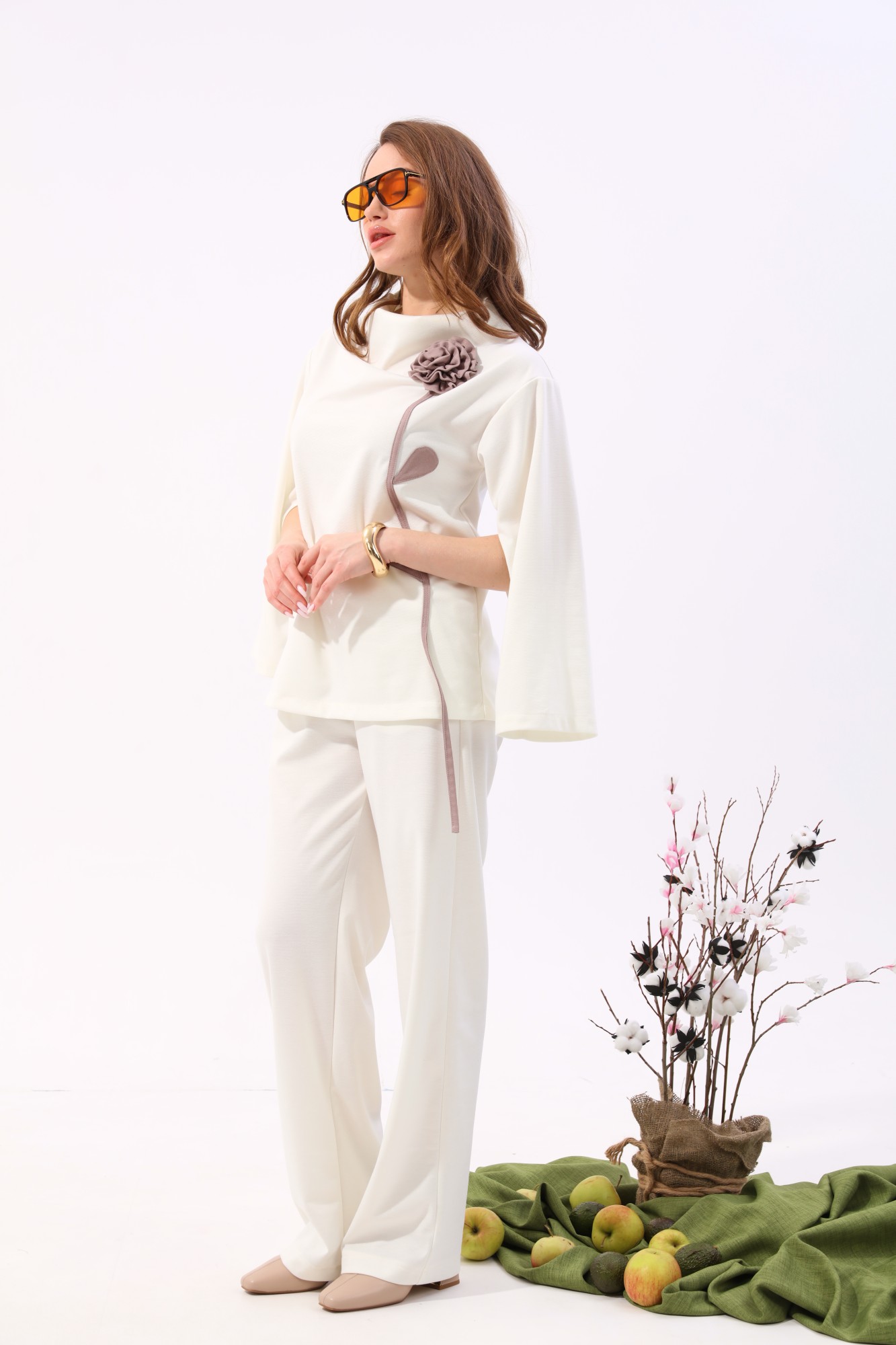 Брючный костюм NikVa н922 -2 молоко, песок с ID товара 421685