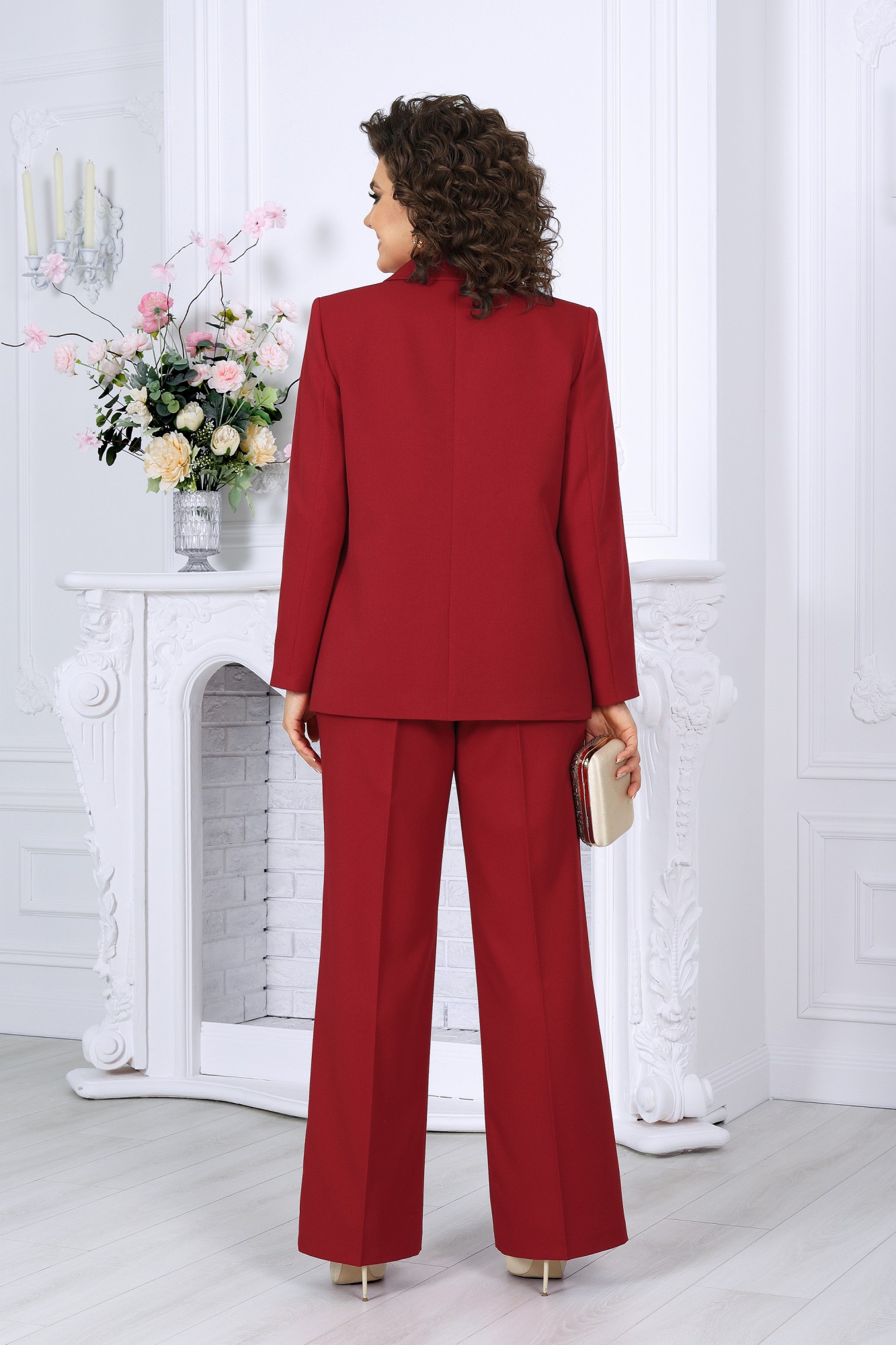 Элегантный брючный костюм двойка — идеальный выбор для деловых встреч, офисных будней, торжеств и вечерних выходов. Костюм подходит для женщин с формами: он формирует правильный силуэт, подчеркивая достоинства и создавая стройный образ. Двубортная застежка со смещением и декоративной вставкой создаёт эффект многослойности, придавая образу стильный акцент. Универсальная модель — одинаково уместна как на работе, так и на торжественном мероприятии. Костюм брючный 2-х предметный, состоящий из жакета и брюк. Жакет двубортный, полуприлегающего силуэта, выполнен из костюмной поливискозы. Модель на подкладке, с плечевыми накладкам. Спереди обработаны рельефные швы, направленные от пройм до низа; в нижней части переда расположены прорезные карманы с клапаном, в верхней, слева – имитация прорезного кармана с листочкой. Перед со смещенной внешней застежкой на 2 декоративные пуговицы и внутренней на 2 потайные. Спинка со средним швом. Воротник пиджачного типа. Рукав длинный, втачной. Правая сторона жакета дополнена декоративной вставкой, имитирующей двойную деталь переда. Длина жакета - 68 см; длина рукава - 61 см. Брюки классические, с кантами и посадкой на талии, выполнены из костюмной поливискозы. Модель с центральной застёжкой на тесьму-«молнию», на притачном поясе, застегивающемся на петлю и пуговицу. Передние и задние половинки брюк с таллиевыми вытачками, направленными от пояса вниз. Спереди обработаны боковые наклонные карманы. Для лучшего прилегания брюк в области талии в поясе по задним половинкам вставлена эластичная лента. Длина брюк по боковому (с поясом)-107 см (50-52 р-р), 108 см (54-58 р-р).