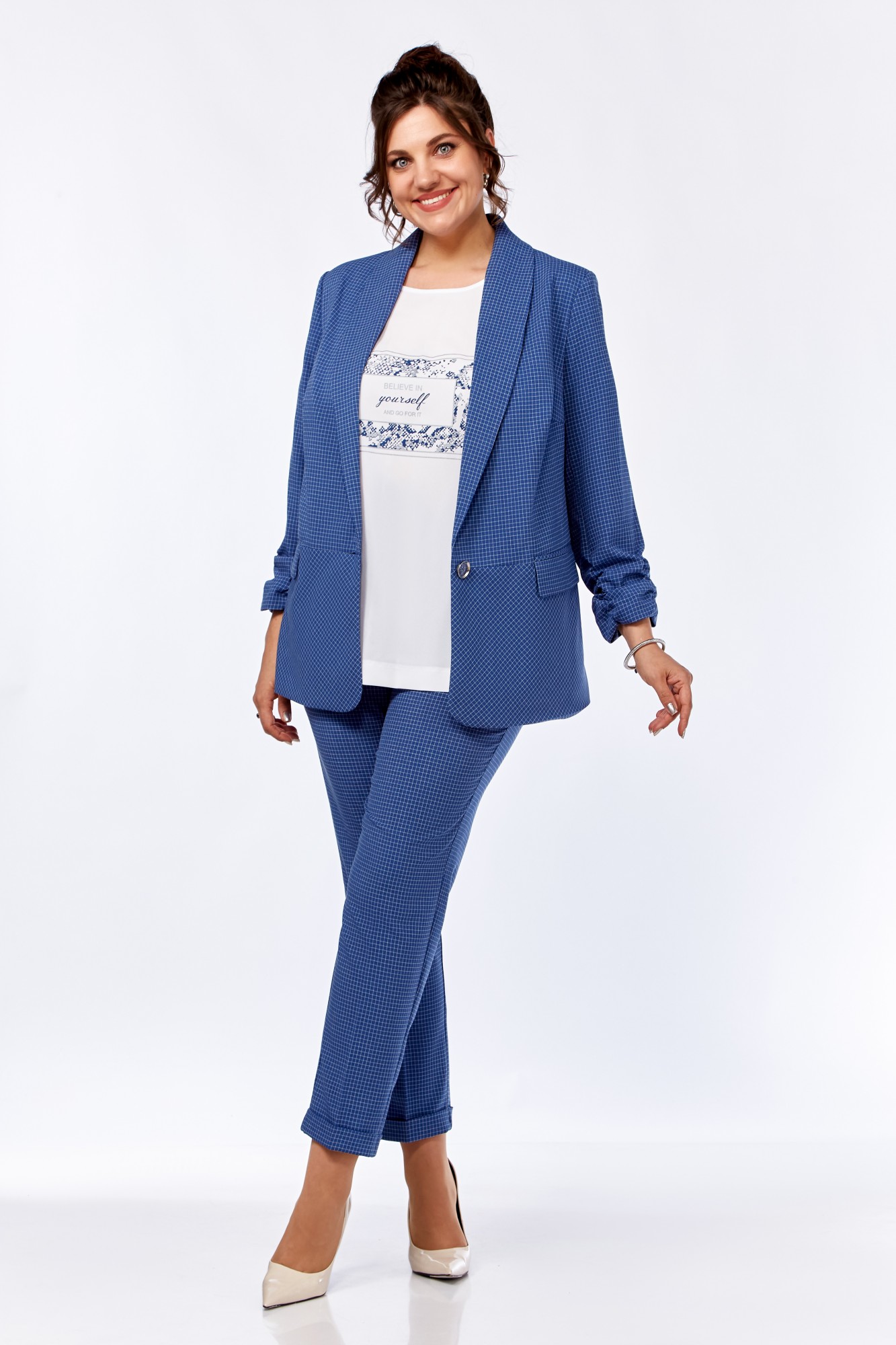 Костюм/комплект Ольга Стиль С614 синий, клетка