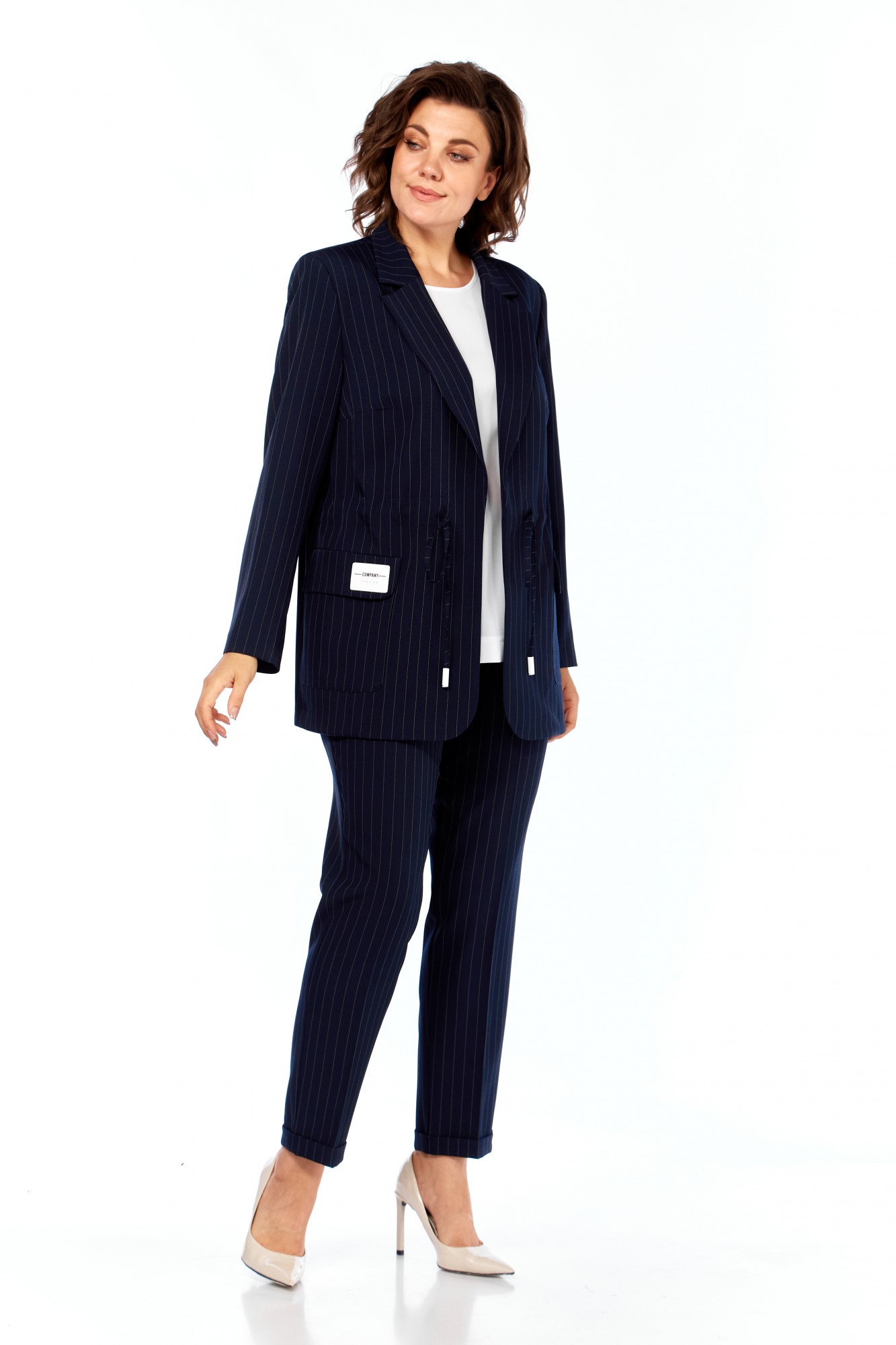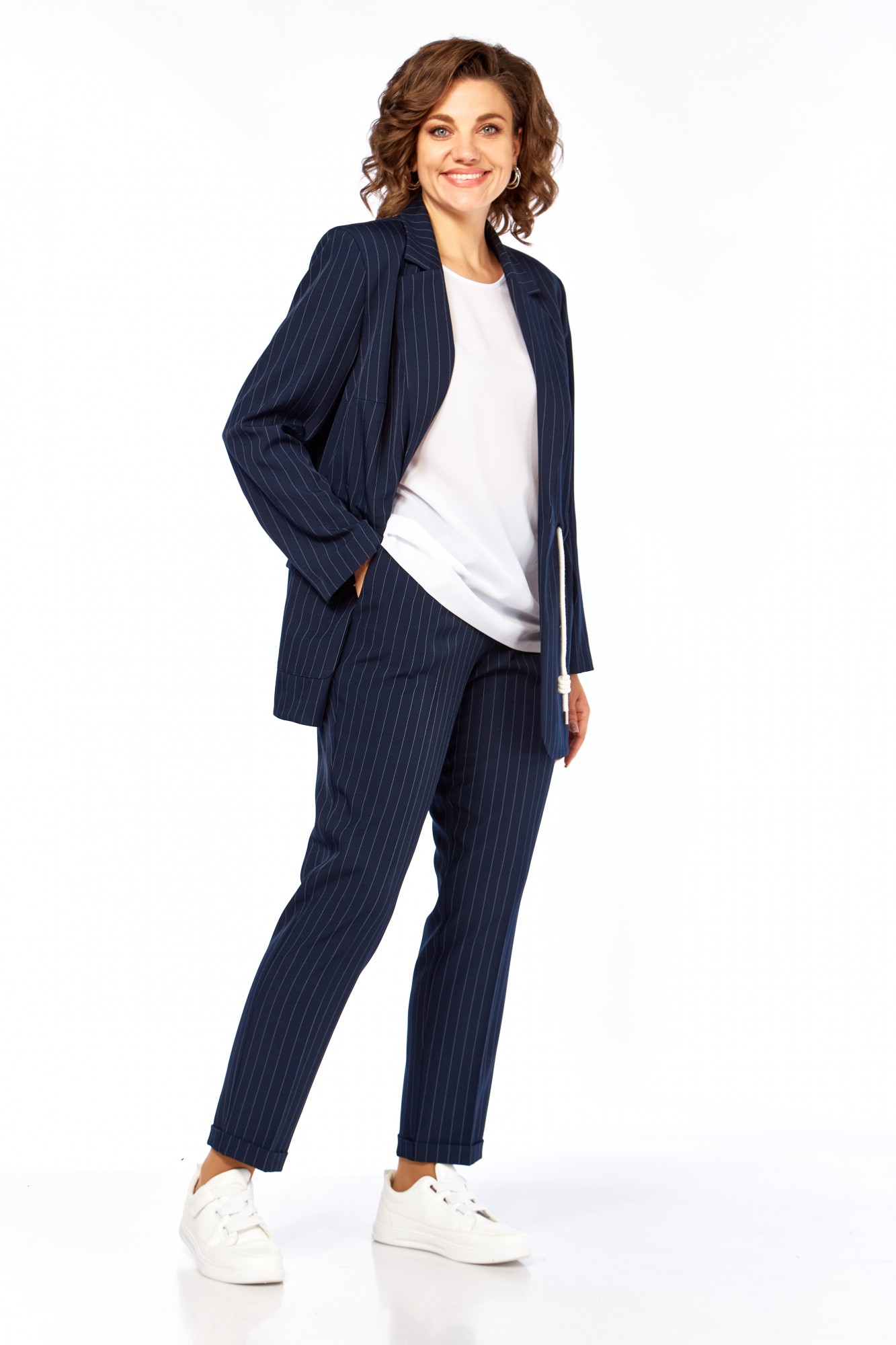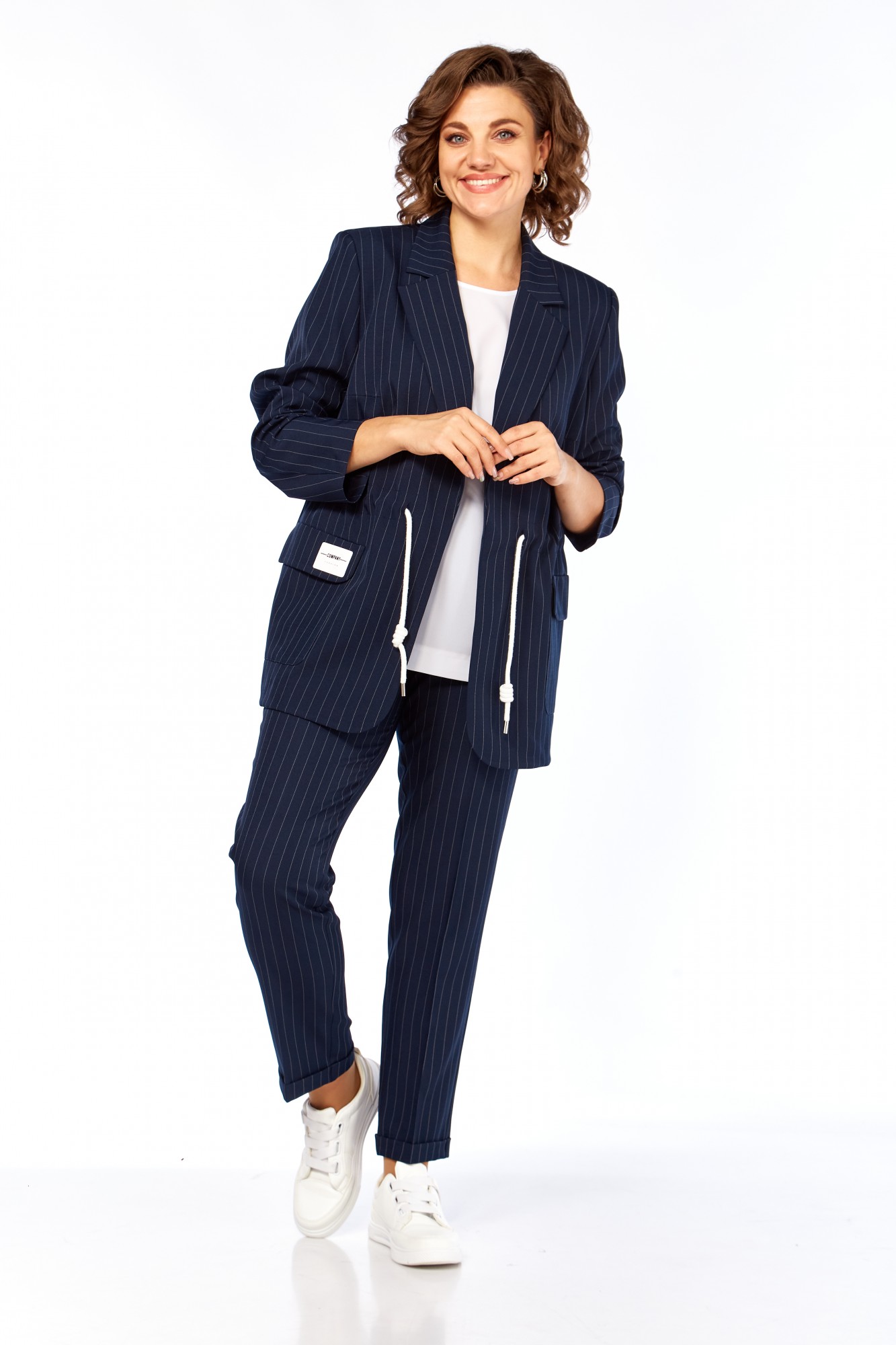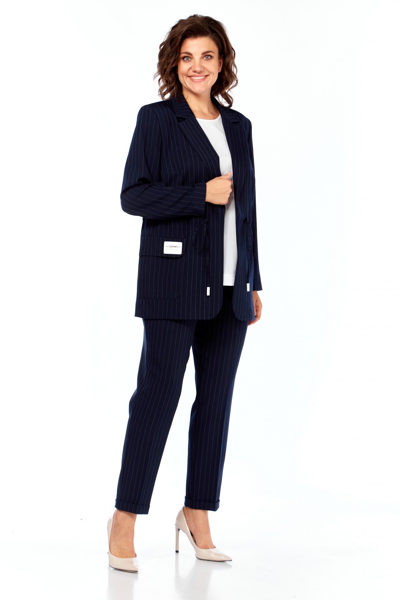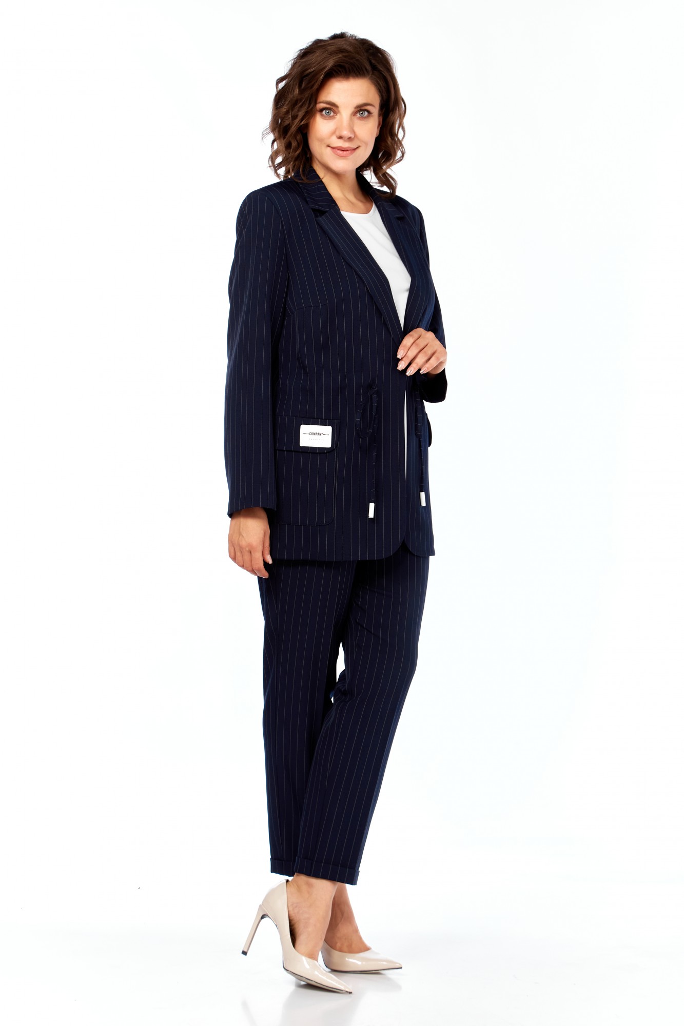 Костюм/комплект Ольга Стиль С958 тройка темно-синий, полоска