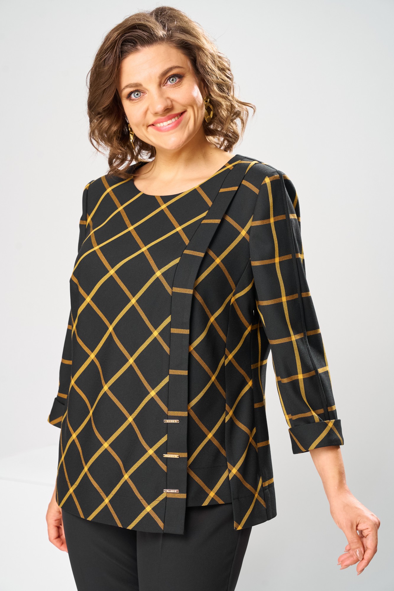 Брючный костюм Romanovich Style 2-1269 горчица, чёрный
