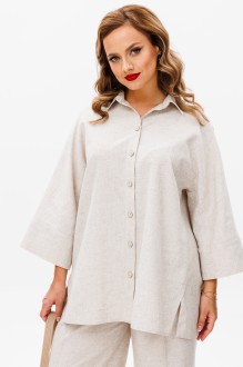 48:Блузка Длина посередине спинки – 74,0 см (±2,0 см), Ширина на уровне глубины проймы – 58,0 см (±1,0 см), Ширина на уровне линии талии – 65,0 см (±1,0 см), Ширина на уровне линии бедер – 71,0 см (±1,0 см), Длина рукава от шва втачивания воротника с манжетой – 62,0 см (±1,0 см), длина манжеты - 10,0 см (±0,5 см), Ширина рукава вверху – 22,5 см (±1,0 см), Ширина рукава внизу по манжете - 21,5 см (±0,5 см). Брюки Длина по боковому шву с поясом - 110,0 см (±2,0 см), Ширина на уровне линии талии (резинка пояса в растянутом виде) - 52,0 см (±1,0 см), Ширина на уровне линии бедер - 56,0 см (±1,0 см), Ширина по низу - 30,5 см (±0,5 см), Ширина пояса - 4,5 см.