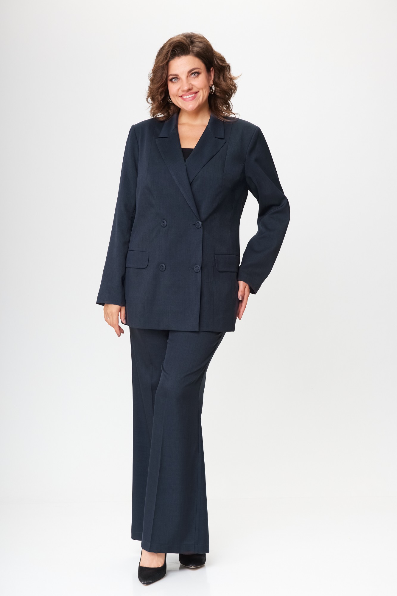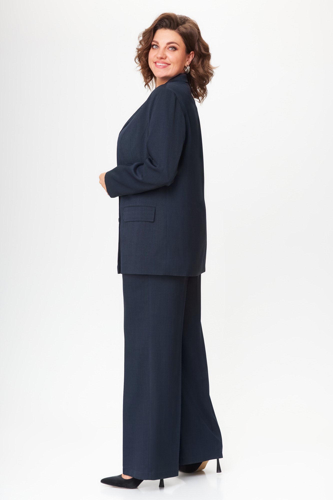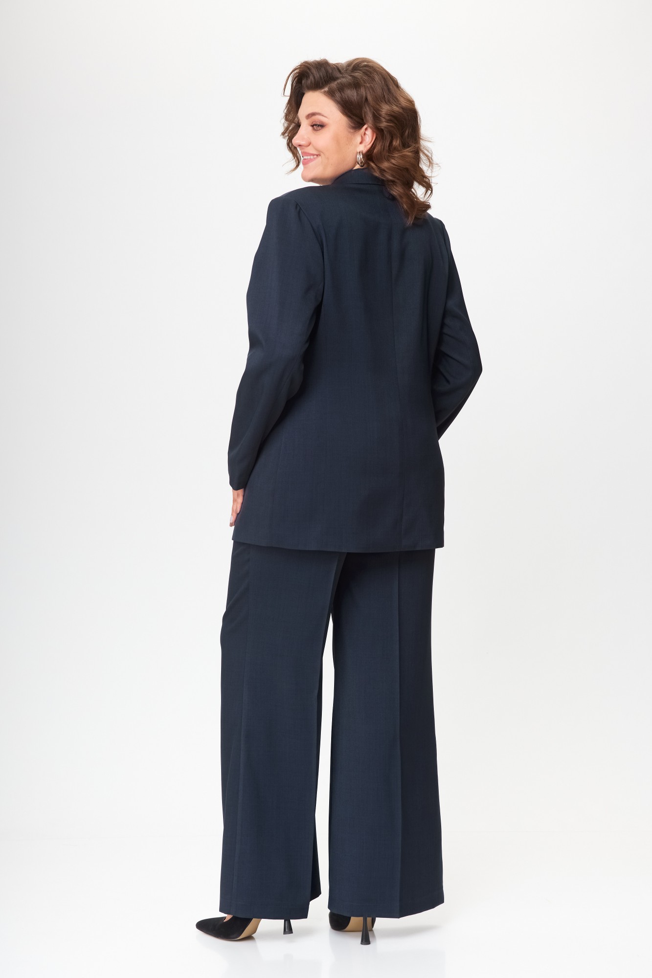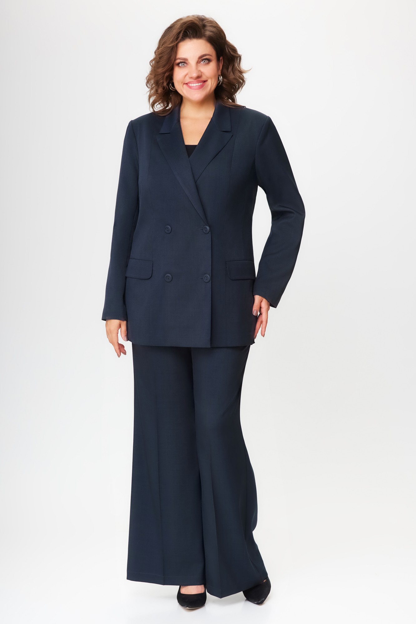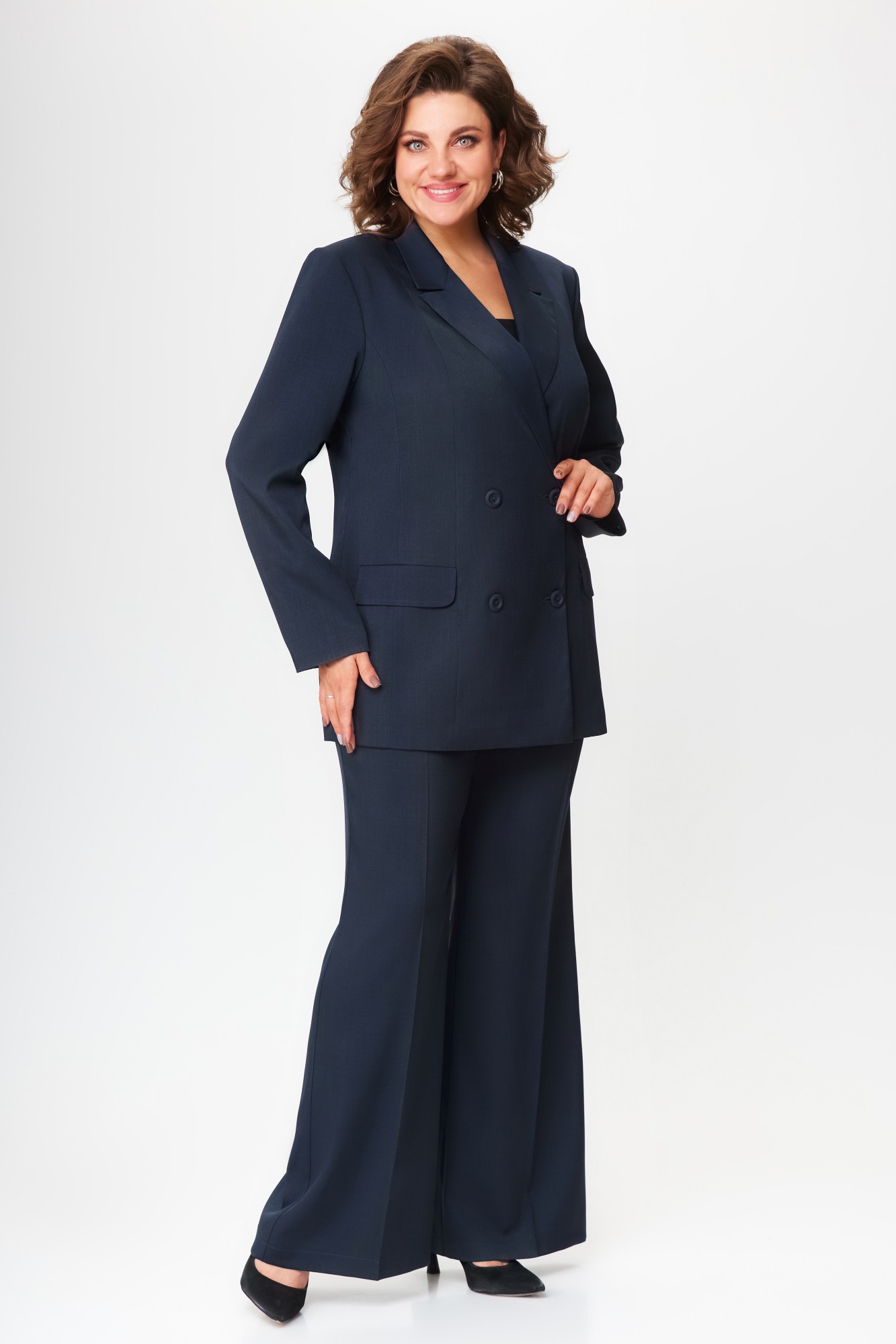 Модный женский костюм — выбор тех, кто стремится выглядеть презентабельно в любой ситуации. Идеален не только для офиса и деловых встреч, но и для торжественных мероприятий. Сейчас актуальны комплекты свободного кроя, не сковывающие движения. Широкие и длинные брюки — горячий тренд осенне-зимнего сезона, который можно носить всегда. Выбор остается за вами! Жакет прямого силуэта, на подкладке, полочка двубортная с застежкой на петли и пуговицы с прорезными карманами с клапаном. Спинка со средним швом и вертикальными рельефами. Рукав втачной, двухшовный. Брюки полной длинны, со стрелками. В области бедер брюки полуприлегающие, в колене и по низу свободные. По передним половинкам выполнены наклонные карманы и застежка на молнию в среднем шве. По задней половине обработаны талиевые вытачки. Брюки на притачном поясе с эластичной тесьмой и застежкой на петлю и пуговицу.