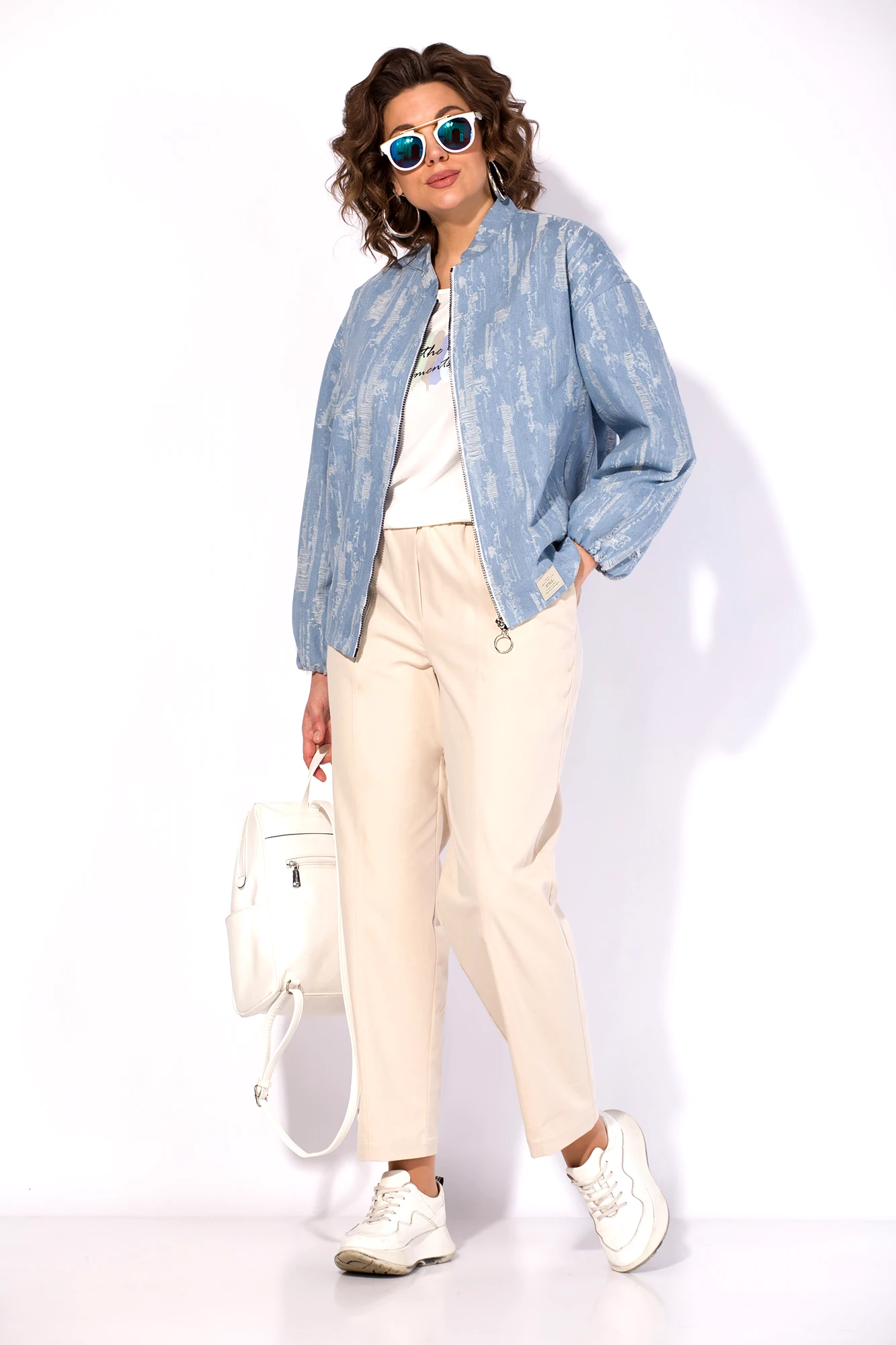 Брючный костюм LILIANA М 1517-1507 двойка голубой, бежевый