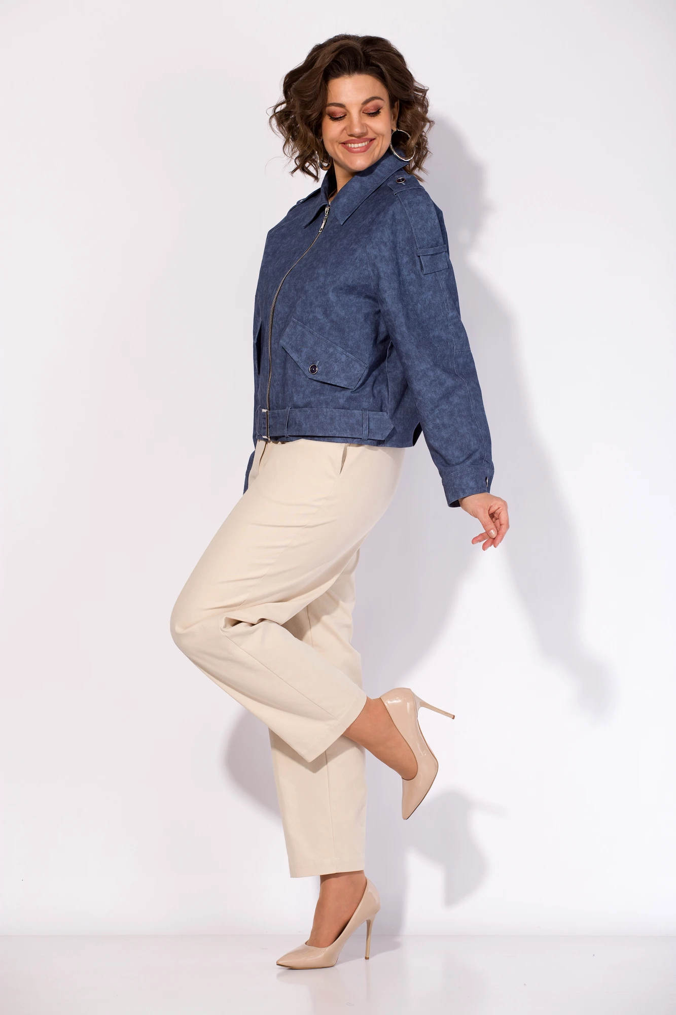 Брючный костюм LILIANA М 1522-1507 двойка синий, экрю