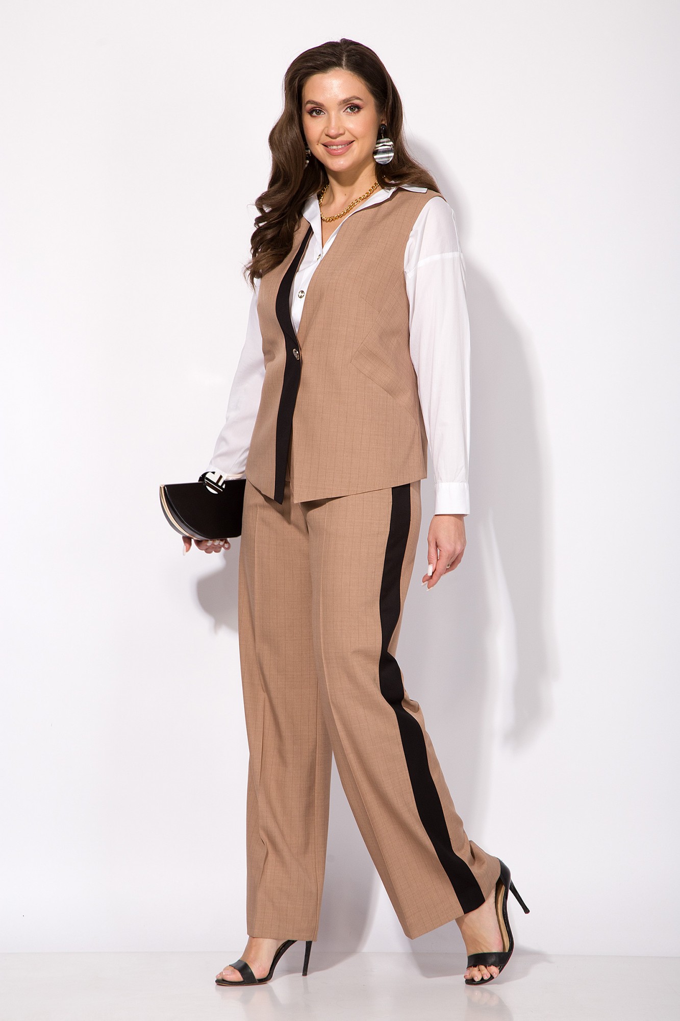 Брючный костюм LILIANA М1433 двойка песочный+черный с ID товара 420430