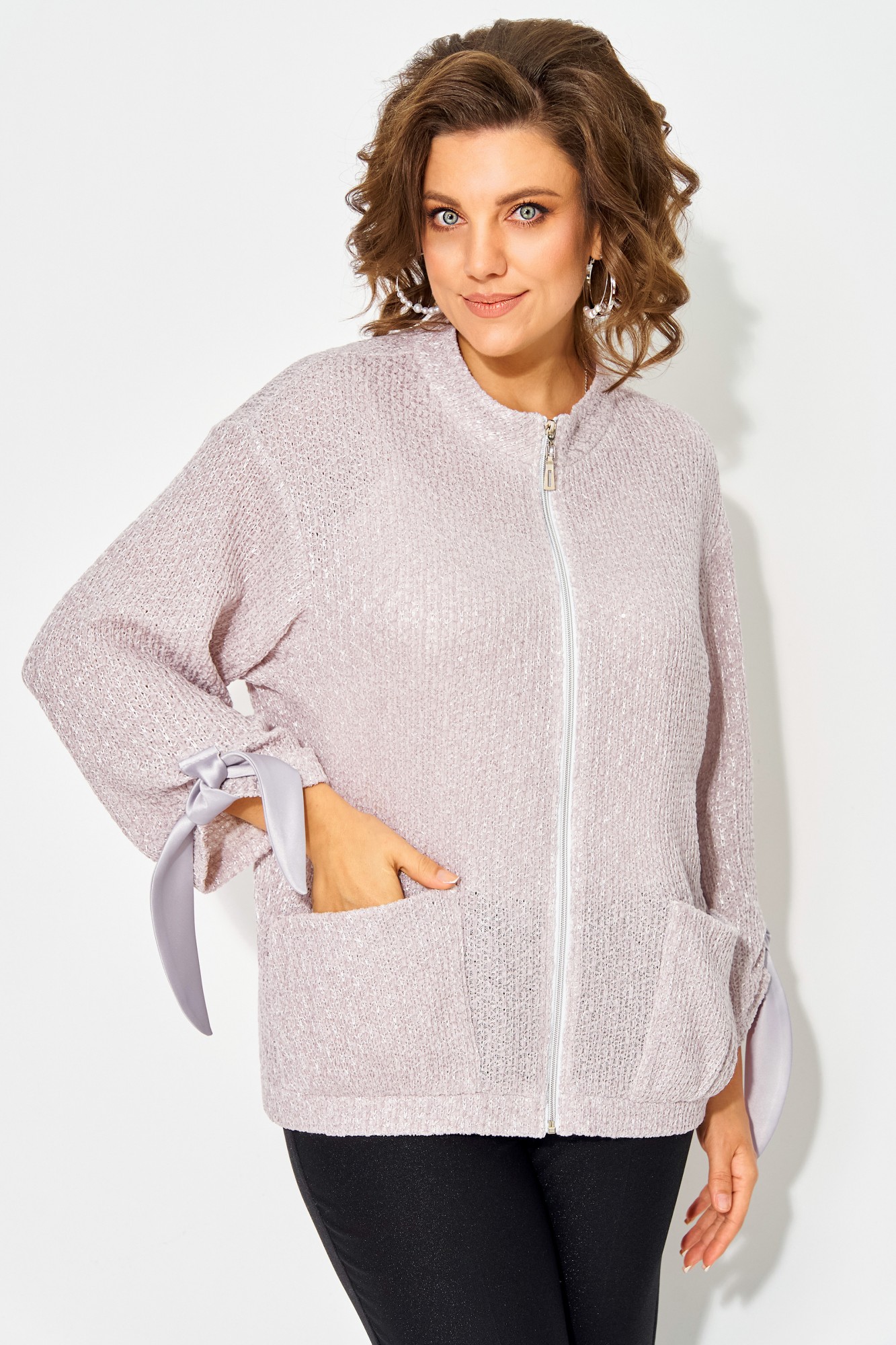Эффектный, нарядный облегченный жакет, выполнен из вязанного трикотажа с эффектом легкого мерцания. Модель свободного силуэта, с рукавом длиной ¾-ти на спущенном плечевом поясе. Горловина обработана полулежащей стойкой. Застежка центральная на молнию. По полочке расположены аккуратные накладные карманы. Низ изделия оформлен притачной планкой. Изюминкой данной моделям служит необычные паты по рукаву с завязкой в виде банта. Этот вязанный трикотажный жакет - идеальный вариант для создания стильного и привлекательного романтического образа! Мягкий и нежный материал делает его очень приятным на ощупь, теплым и уютным, а легкое мерцание придает свою изюминку. Отлично сочетается с классическими прямыми брюками из базовой коллекции от бренда Лилиана!