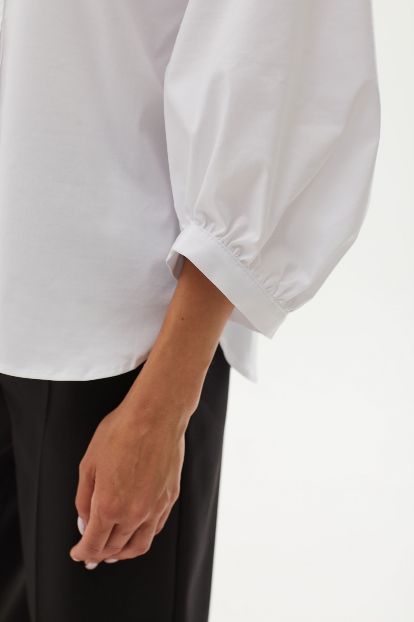 блузка: 71% хлопок, 27% п/э, 2%эластан; брюки: 65% п/э, 32% вискоза, 3% спандекс