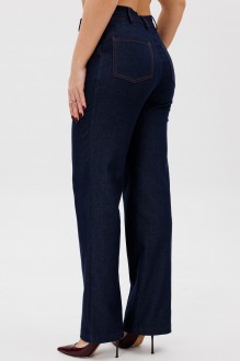 Брюки широкие прямые. Пояс притачной со шлевками, застежка на молнию с гульфиком и петлю-пуговицу. Передние половинки цельные, в боковых швах функциональные карманы с диагональным входом. Задние половинки цельные с накладными карманами.