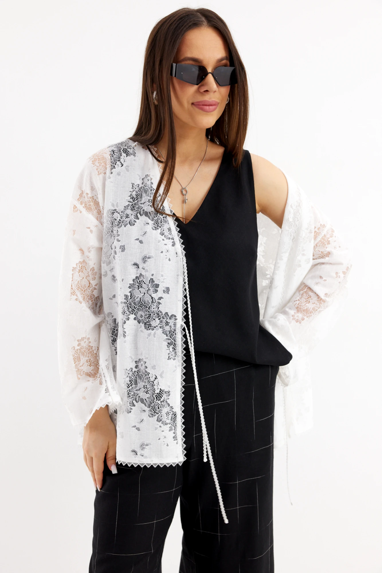 Брючный костюм Магия Моды 2712 тройка черно-белый