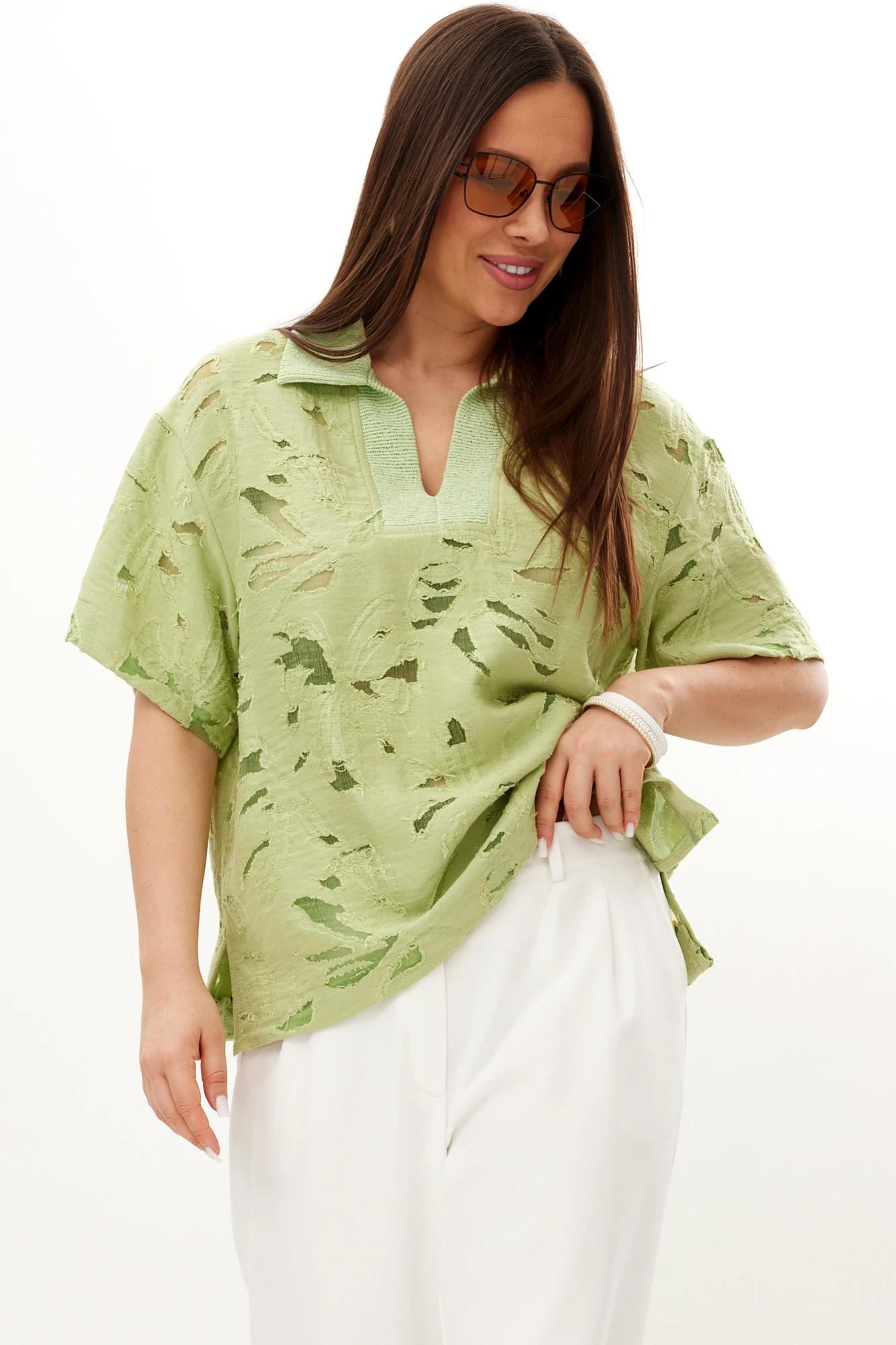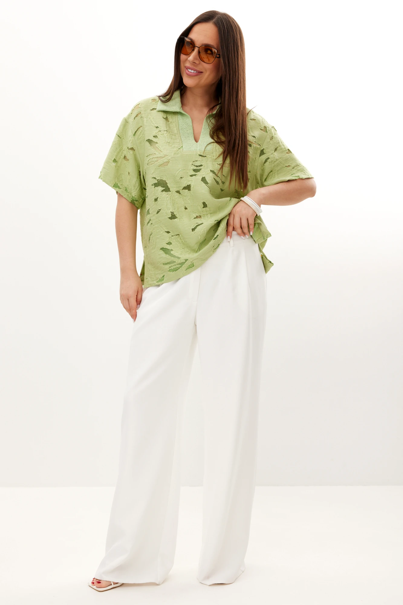 Брючный костюм Магия Моды 2729 двойка фисташковый, белый