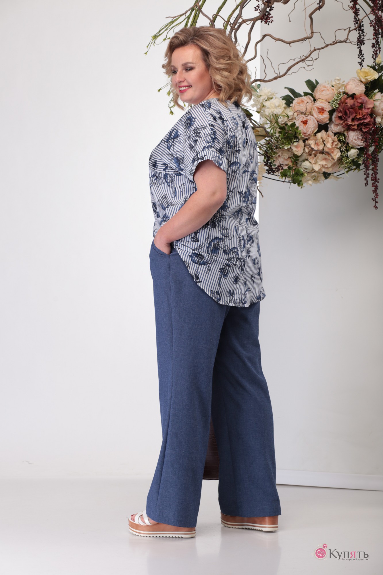 Блуза — 100% хлопок; Брюки — 97% полиэстер, 3% спандекс