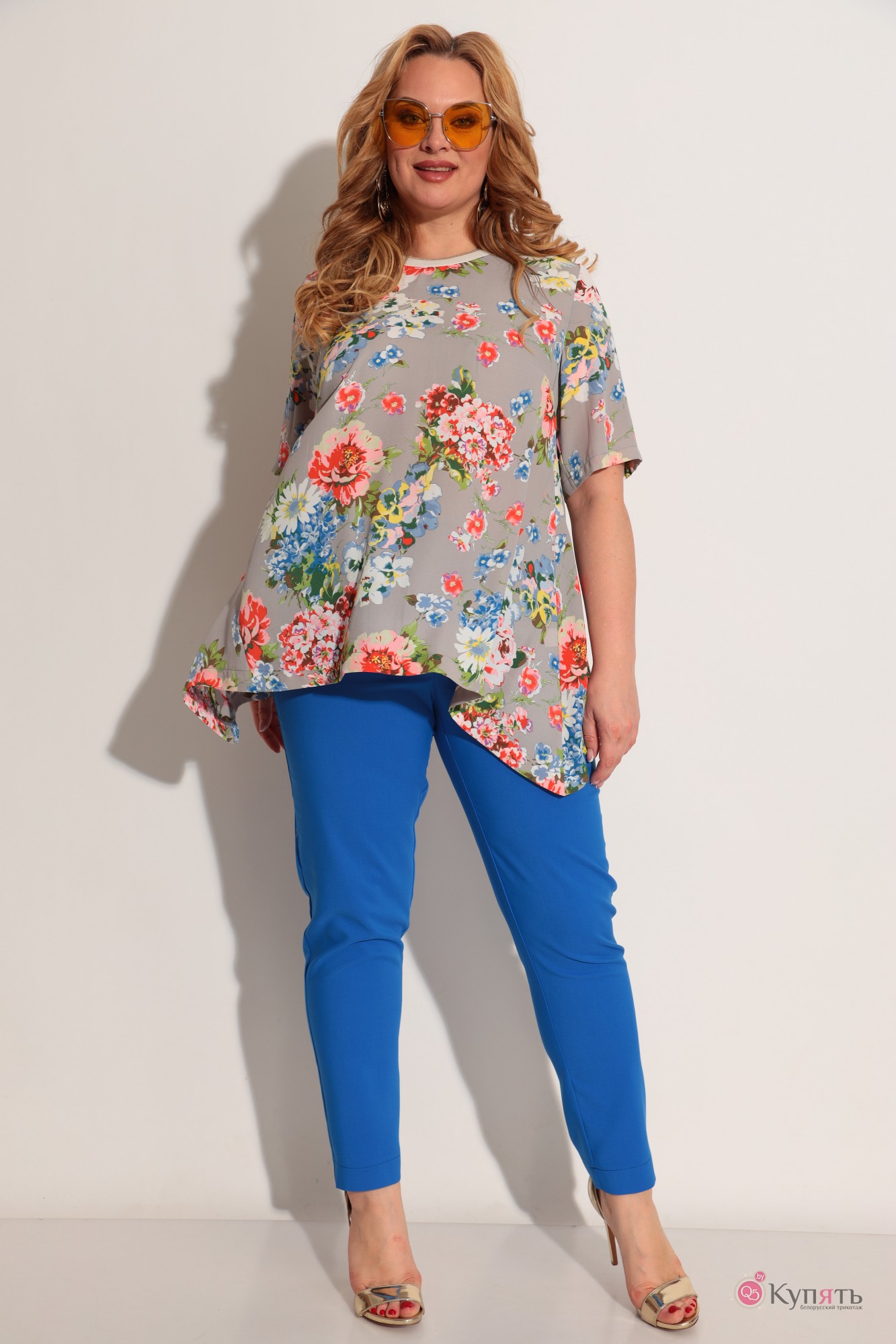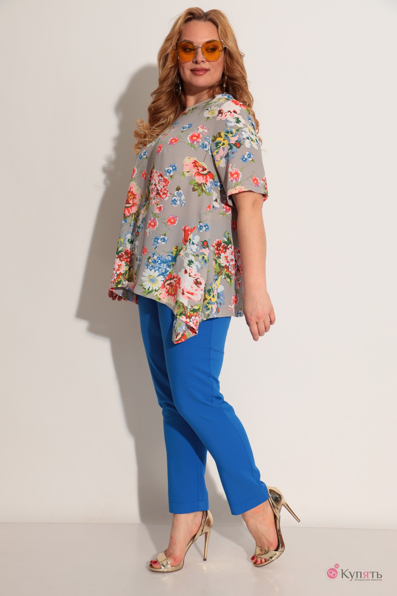 Брючный костюм Michel Chic 1234 цветочный принт, синий с ID товара 290129