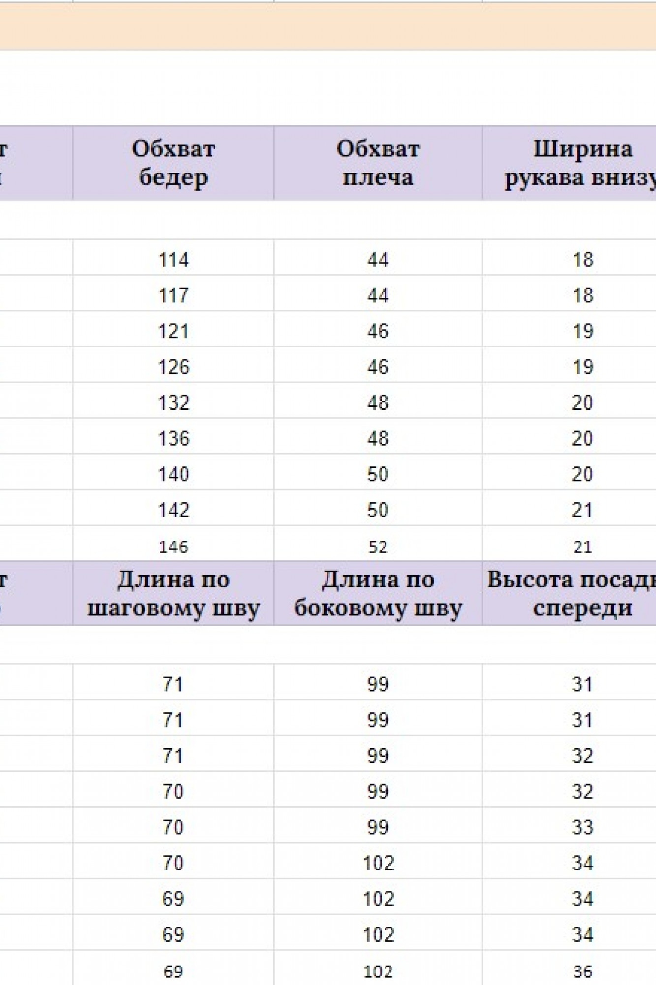 Длина брюк по боковому шву 99 см, шаговому — 70 см.