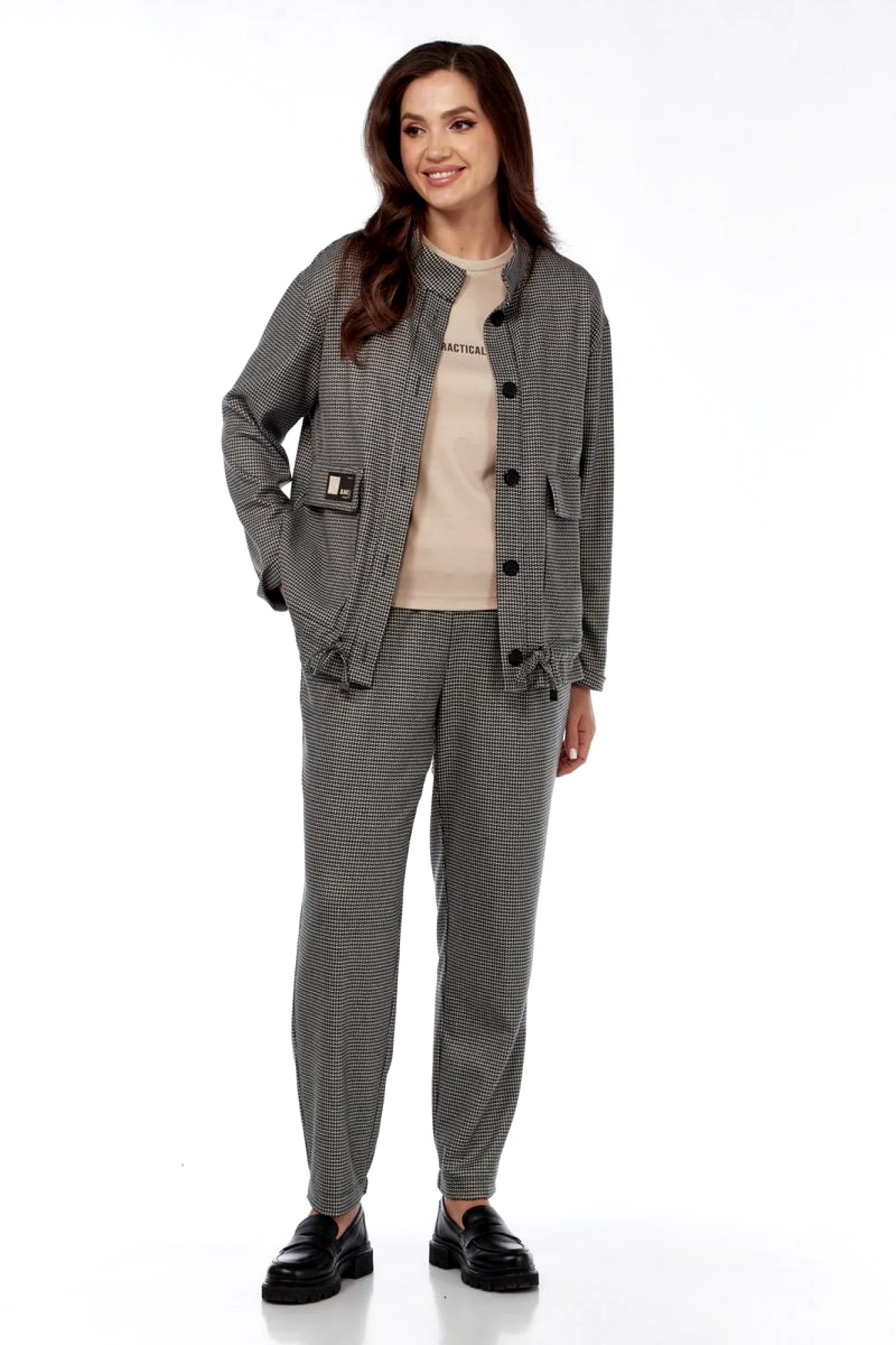 Брючный костюм Милора Стиль 1252 тройка чёрная гусиная лапка
